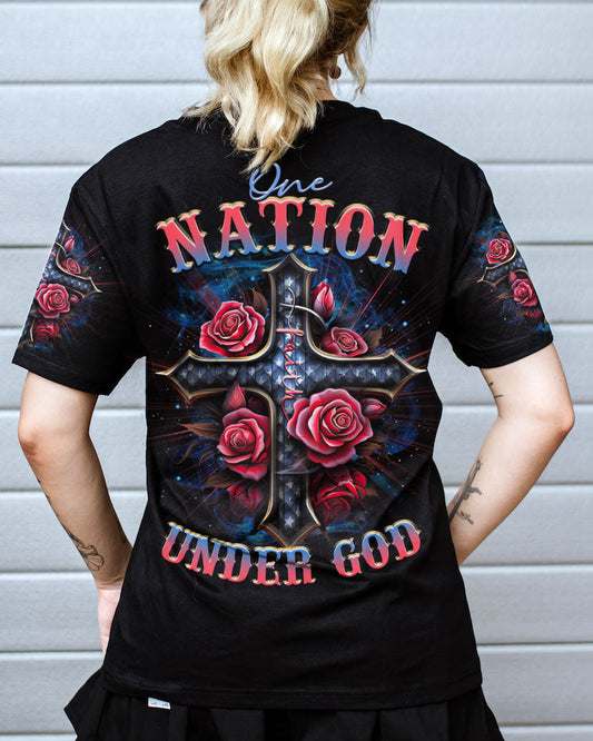 One Nation Under God Cross Rose Women's All Over Print Shirt - Tltr0407233