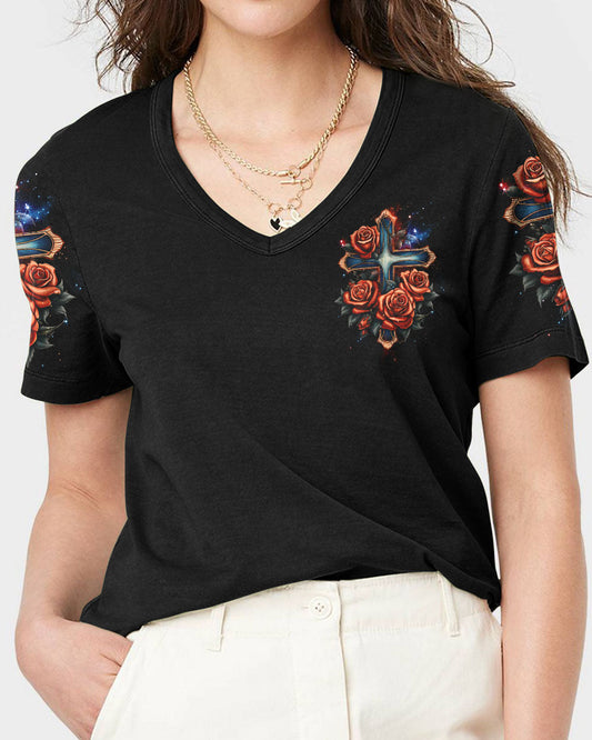 Faith Cross Rose Vintage Women's All Over Print Shirt - Tltw0507232