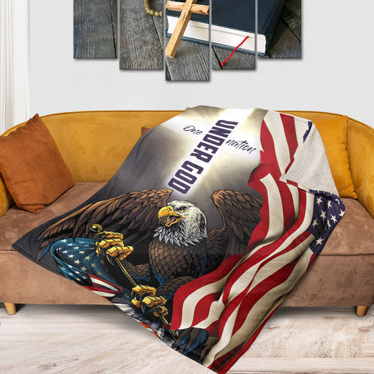 Eagle Christian Fleece Blanket - One Nation Under God AA70