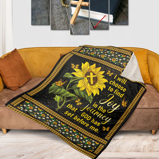 I Will Choose To Find Joy In The Journey | Sunflower And Cross | Stunning Fleece Blanket FBHN616