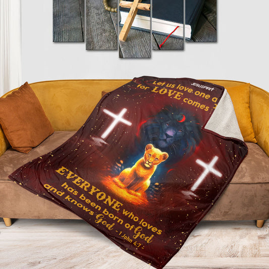 Everyone Who Loves Has Been Born Of God And Knows God | 1 John 4:7 | Fleece Blanket | Cross And Lion FBHN617