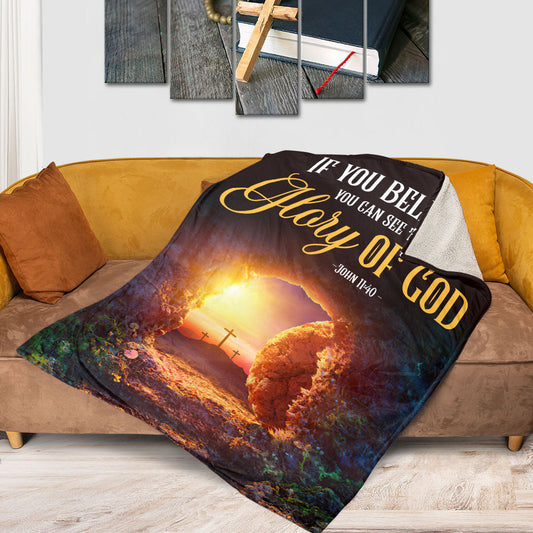 If You Believe You Can See The Glory Of God | John 11:40 | Stunning Cross Fleece Blanket FBM637