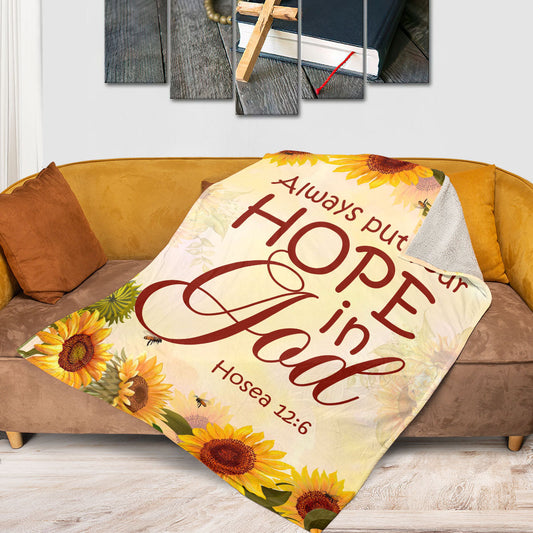 Stunning Sunflower Fleece Blanket | Always Put Your Hope In God | Hosea 12:6 FBM632