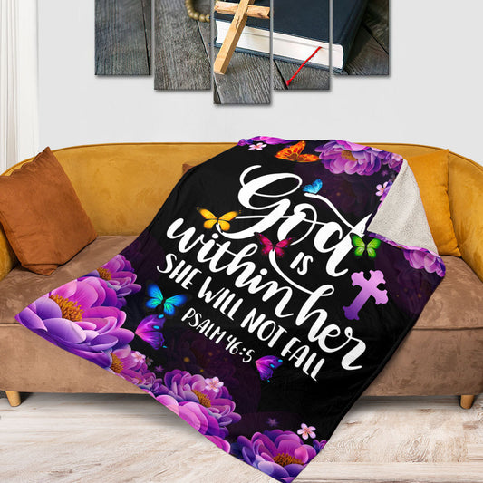Psalm 46:5 | Cross And Butterfly | God Is Within Her, She Will Not Fall | Beautiful Flower Fleece Blanket FBM640