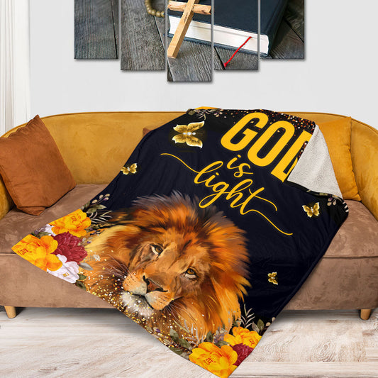 God Is Light | Lion And Roses | Faithful Gift For Christian People | Fleece Blanket FBM649