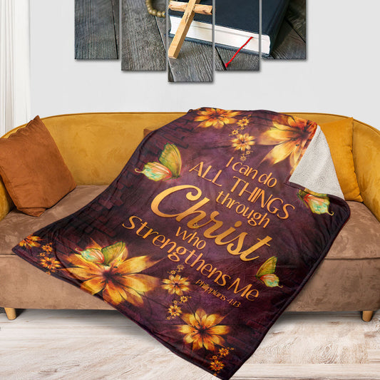 Fleece Blanket | I Can Do All Things Through Christ | Philippians 4:13 | Flower And Butterfly FBHN621