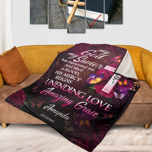 Meaningful Personalized Fleece Blanket | My God My Savior | Faith Cross And Rose FBH624