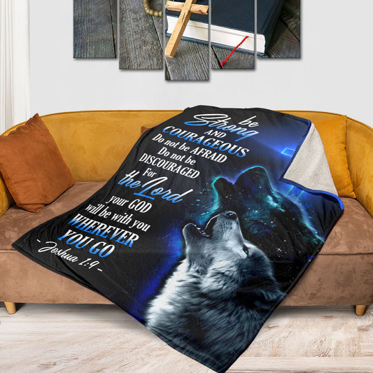 Joshua 1:9 | Be Strong And Courageous | Attractive Fleece Blanket | Wolf And Cross FBH619