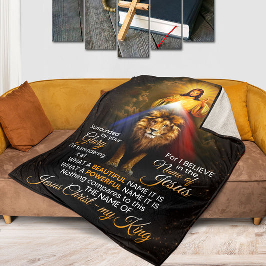 Spiritual Gift Of Faith For Christian People | For The Name Of Jesus Christ - My King | Lion And Jesus | Unique Fleece Blanket FBH799