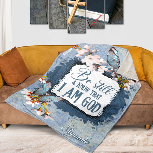 Psalm 46:10 | Be Still And Know That I Am God | Lily And Butterfly | Personalized Fleece Blanket FBHN627