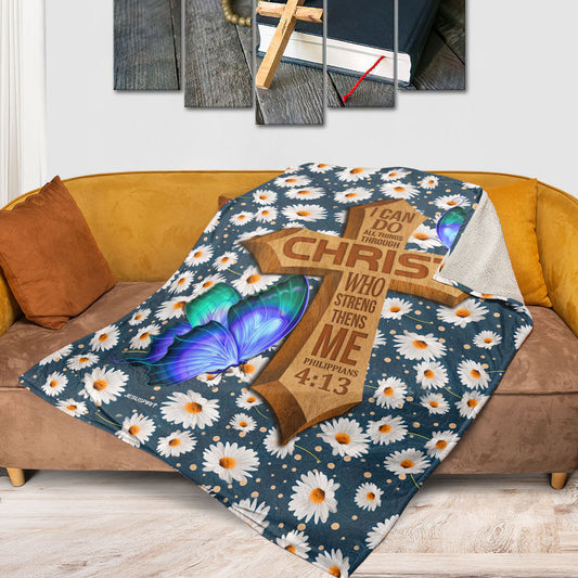 Daisy Fleece Blanket | I Can Do All Things Through Christ | Philippians 4:13 | Christ Gifts For Religious Family FBH782