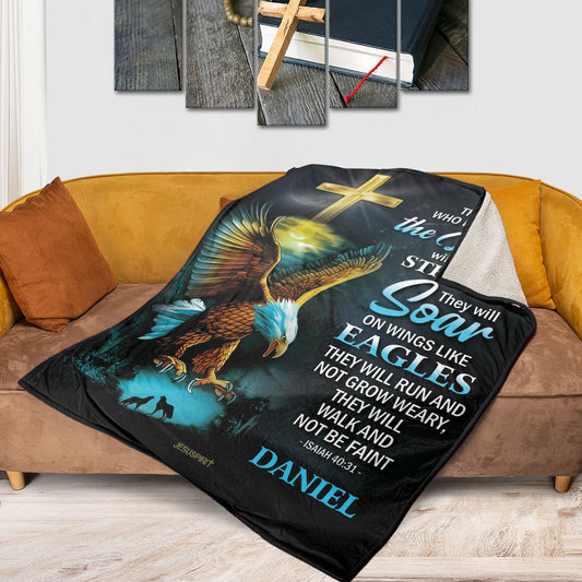Isaiah 40:31 | Those Who Hope In The Lord Will Renew Their Strength | Eagle And Cross | Personalized Fleece Blanket FBH613