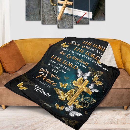 The Lord Turn His Face Toward You And Give You Peace - Special Personalized Butterfly Fleece Blanket NUH324