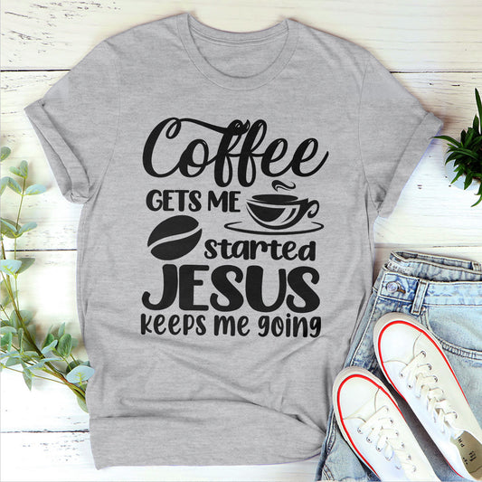 Awesome Unisex T-shirt - Coffee Gets Me Started, Jesus Keeps Me Going HHN346