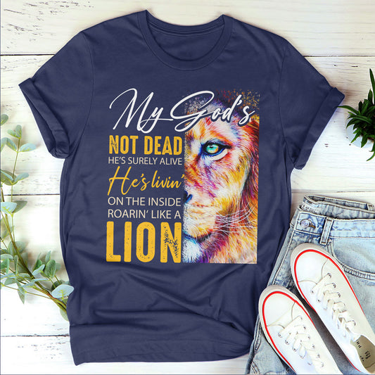 Awesome Christian Unisex T-shirt - He‘s Livin’ On The Inside Roarin‘ Like A Lion AM220
