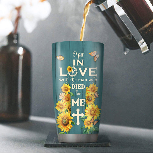 Beautiful Personalized Sunflower Stainless Steel Tumbler 20oz - I Fell In Love With The Man Who Died For Me NUA155