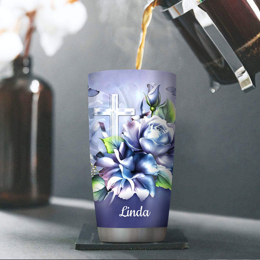 Fancy Personalized Flower And Cross Stainless Steel Tumbler 20oz - God Has Given Us Power And Sound Mind NUA211A