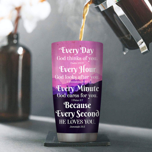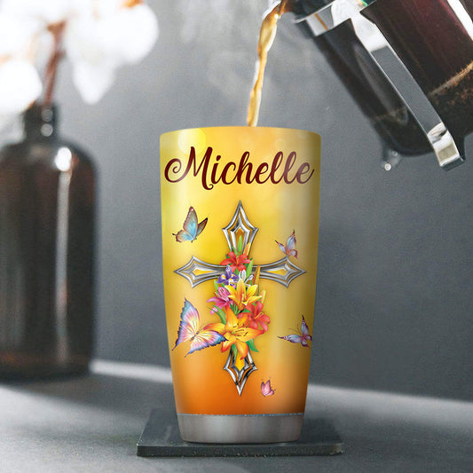 Personalized Cross Stainless Steel Tumbler 20oz | Everyday God Thinks Of You | Ideal Gift For Christians SSTHN604