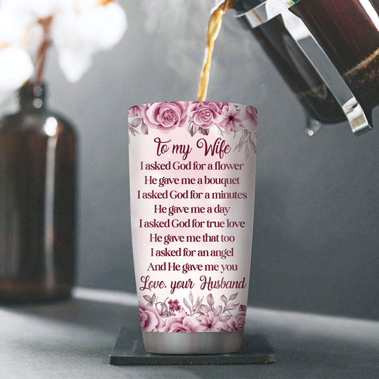 Pretty Personalized Stainless Steel Tumbler 20oz For Wife - I Asked For An Angel And He Gave Me You AHN236