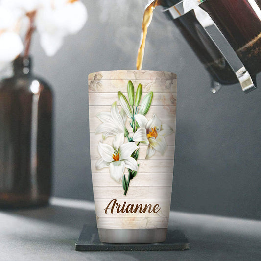 Lovely Personalized Floral Cross Stainless Steel Tumbler 20oz - Trust God And Chill NUA215