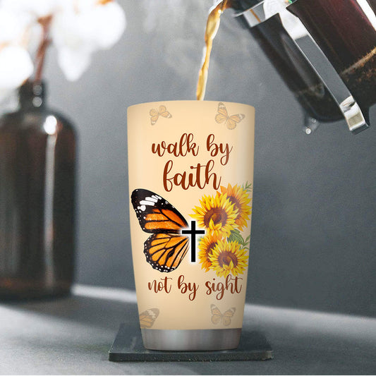 Walk By Faith - Sunflower and Butterfly Stainless Steel Tumbler 20oz AH38