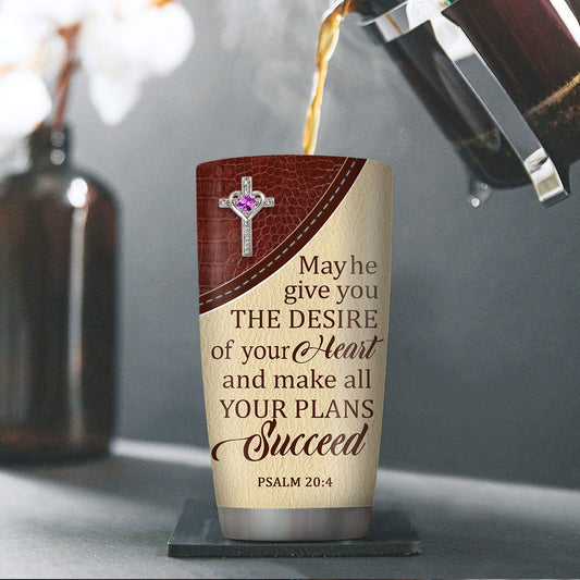 May He Give You The Desire Of Your Heart - Beautiful Personalized Cross Stainless Steel Tumbler 20oz NUM308