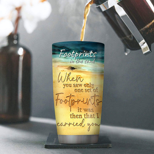 Personalized Stainless Steel Tumbler 20oz | Footprints In The Sand | Religious Gift For Christians SSTNUHN490