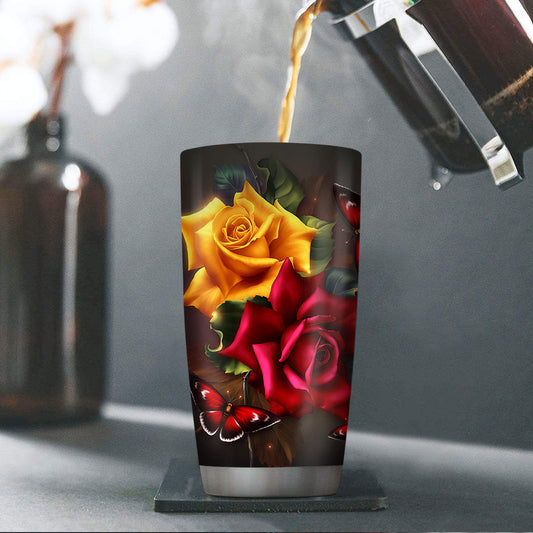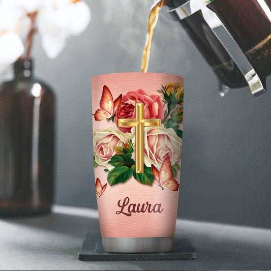 Cross Stainless Steel Tumbler 20oz | Gift For Pastors | Rose And Butterfly SSTH713