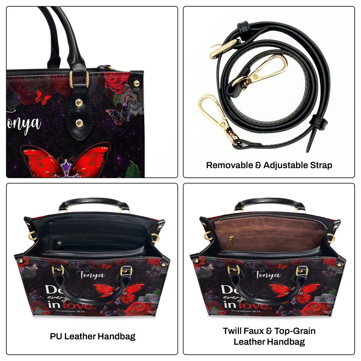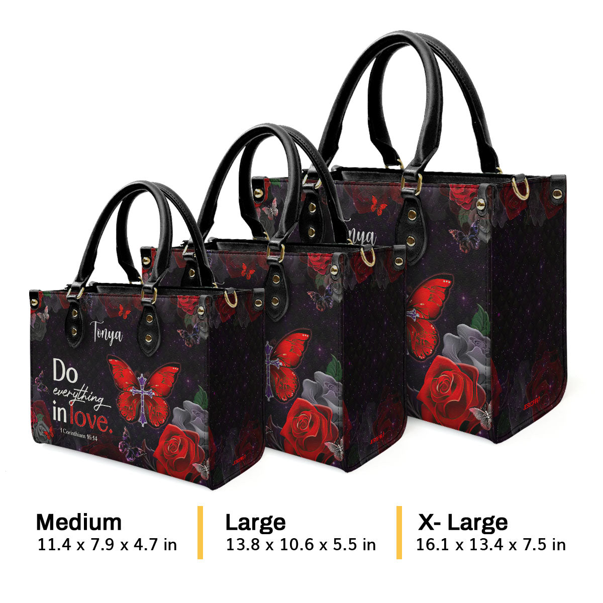 1 Corinthians 16:14 | Do Everything in Love | Inspirational Gifts With Bible Verse For Christian Women | Personalized Leather Handbag With Straps LHBM713