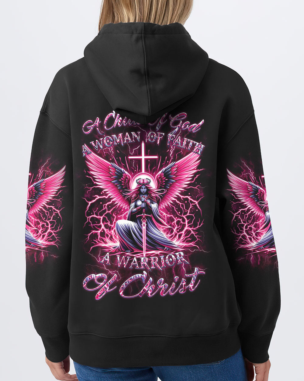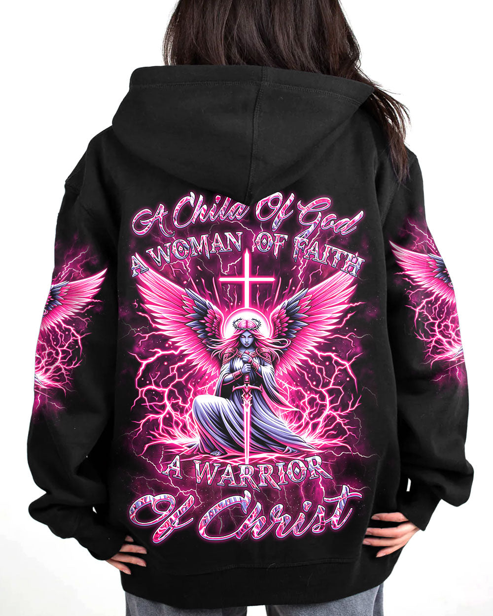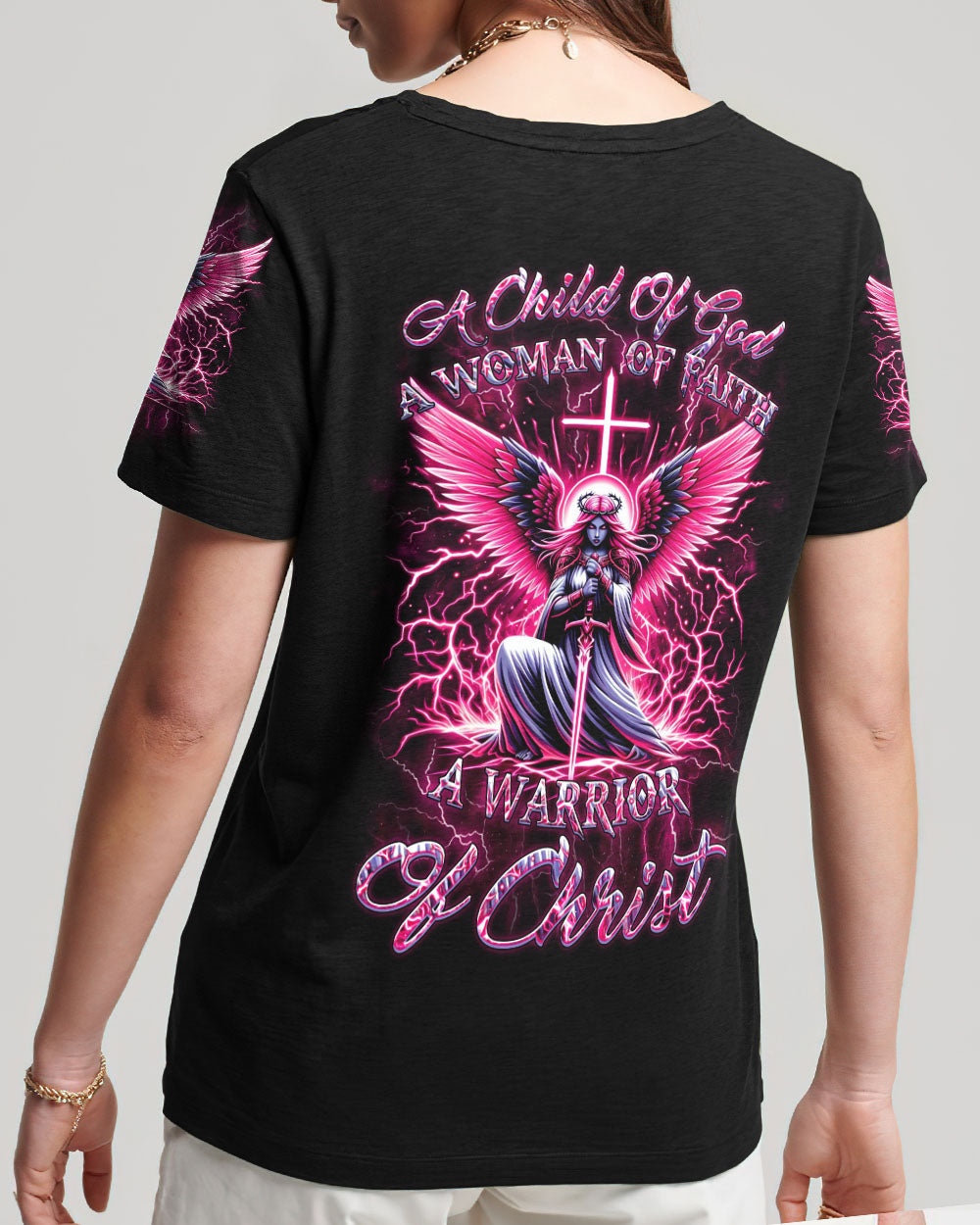 Elevate your spirit with our Faith Christ Design—a radiant Christ woman warrior surrounded by celestial wings, thunders, and a cross backdrop. The inspiring quote, "A child of God, a woman of faith, a warrior of Christ," encapsulates the strength and devotion of this luminous design. Wear this emblem to express your deep connection to faith and showcase the warrior within. Whether for personal inspiration or as a powerful statement of belief, it's a testament to your divine journey. Embrace the warrior spirit—order now and shine with the light of faith.