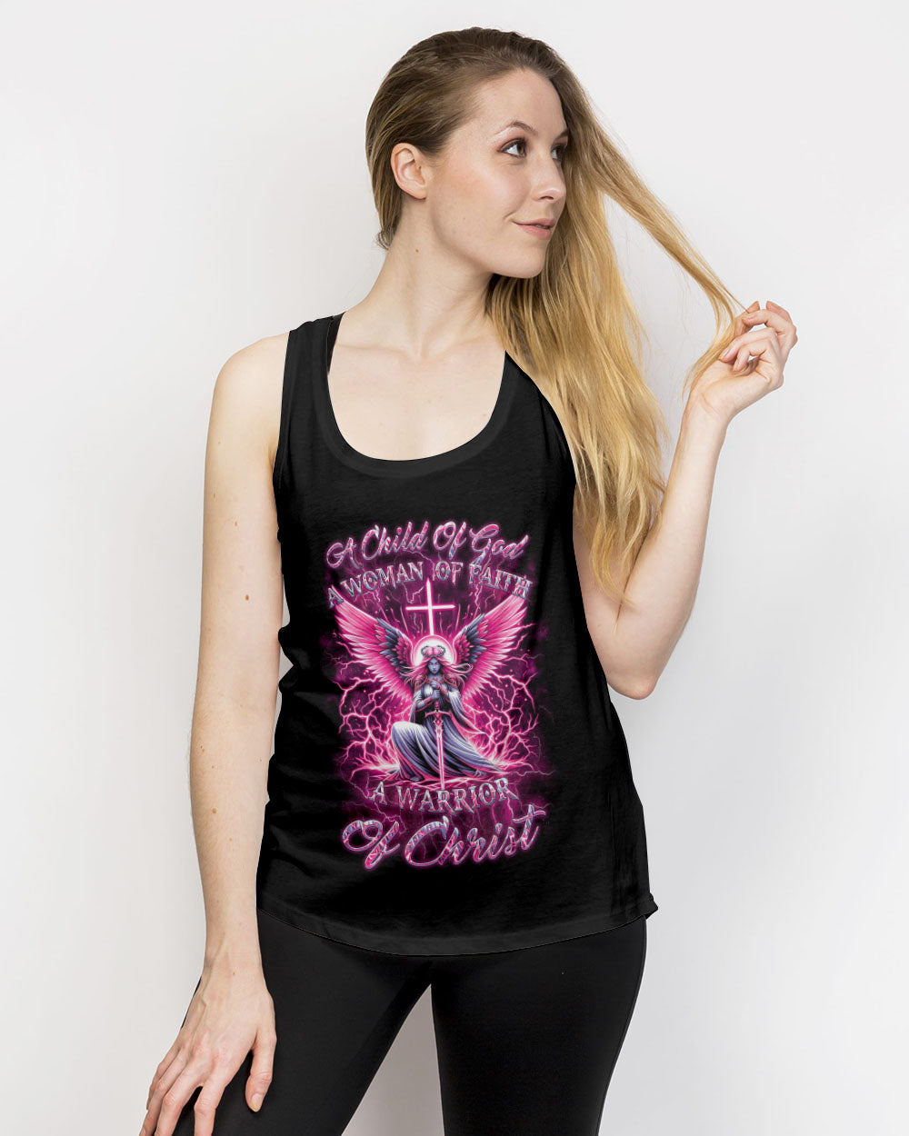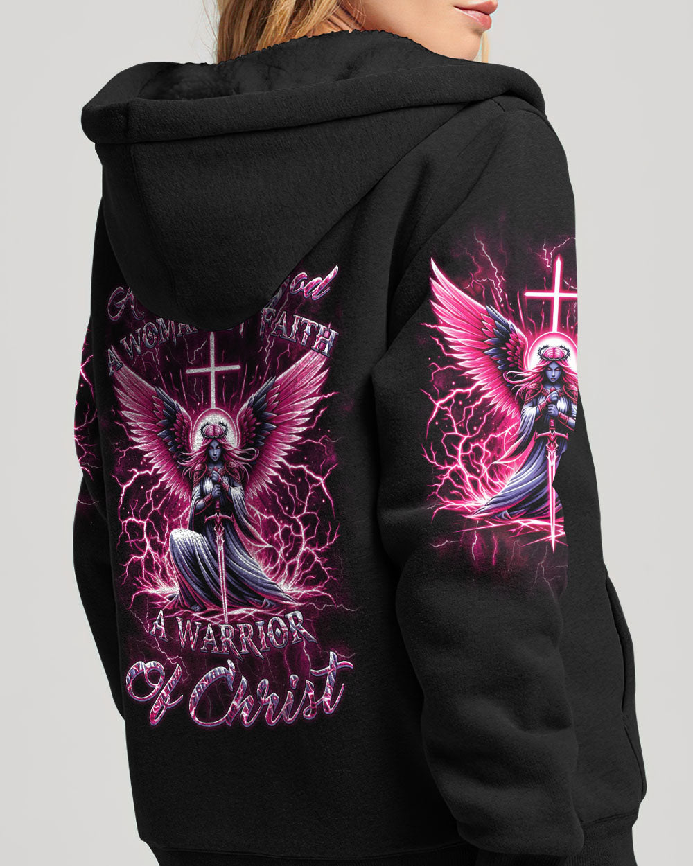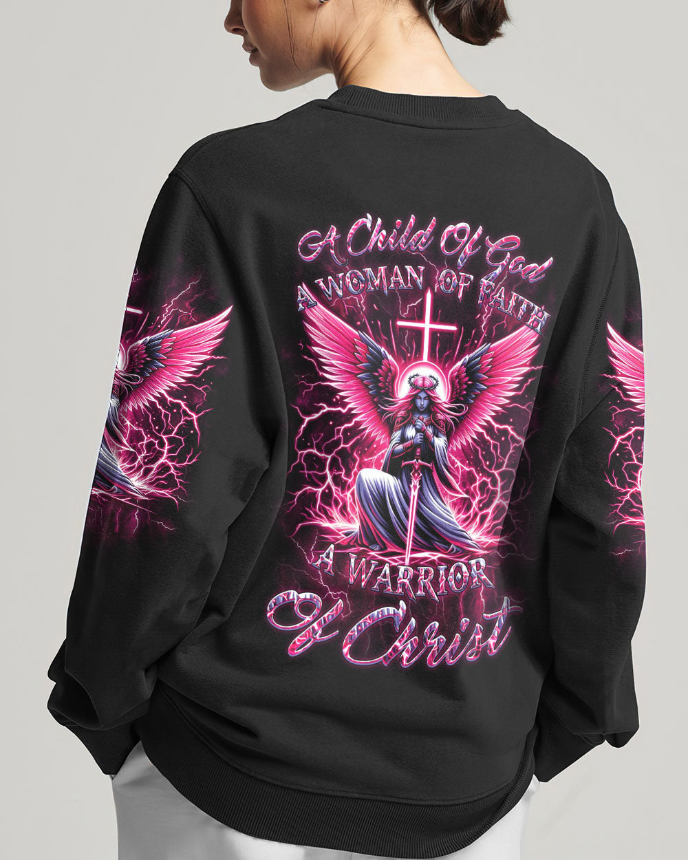 Elevate your spirit with our Faith Christ Design—a radiant Christ woman warrior surrounded by celestial wings, thunders, and a cross backdrop. The inspiring quote, "A child of God, a woman of faith, a warrior of Christ," encapsulates the strength and devotion of this luminous design. Wear this emblem to express your deep connection to faith and showcase the warrior within. Whether for personal inspiration or as a powerful statement of belief, it's a testament to your divine journey. Embrace the warrior spirit—order now and shine with the light of faith.