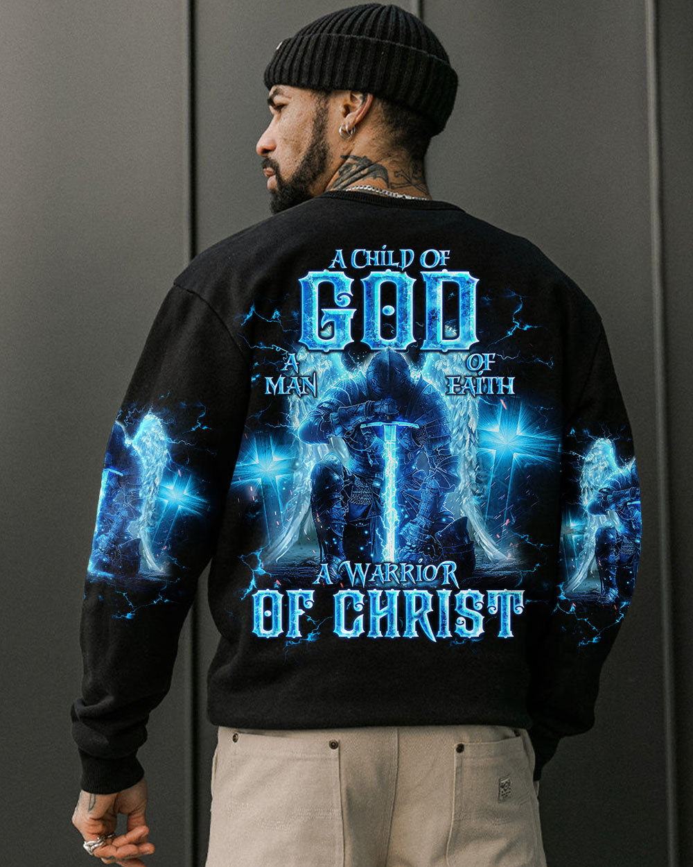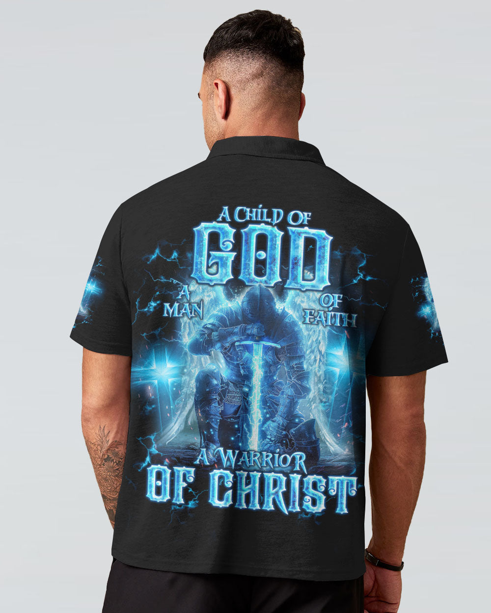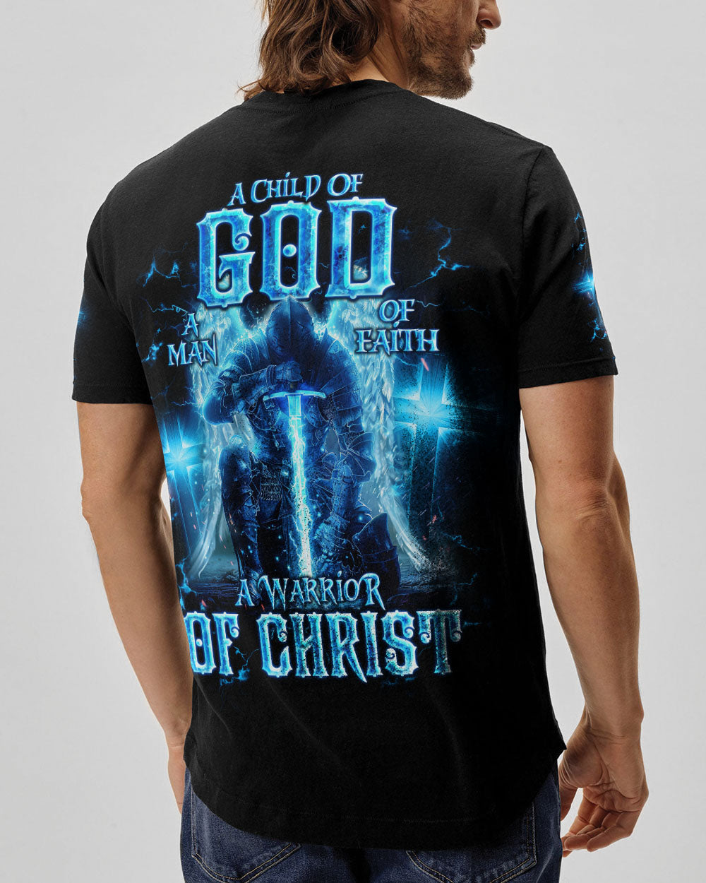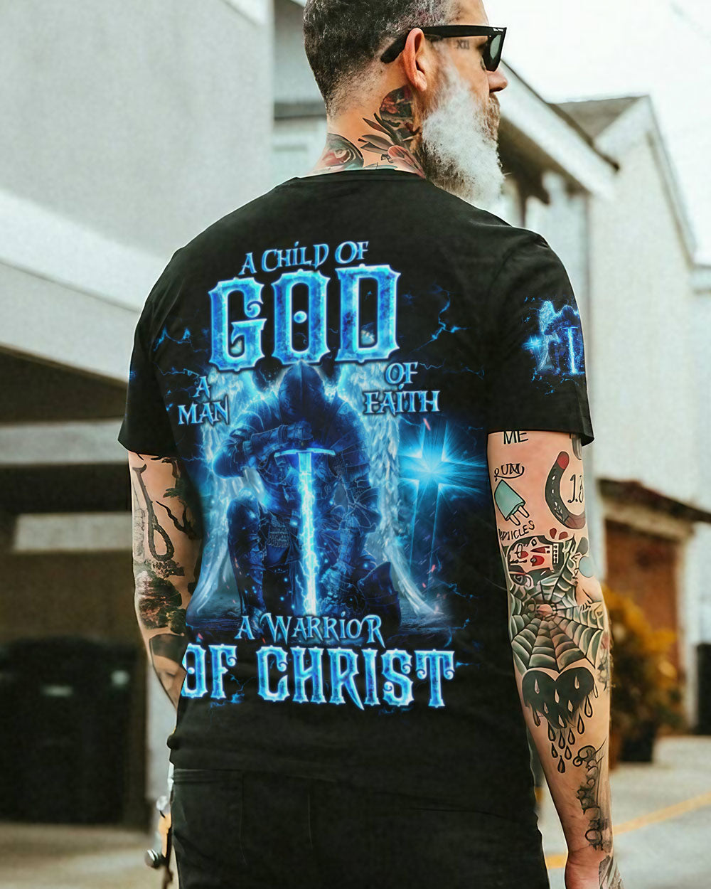 Embody unwavering devotion and strength in your faith with this Warrior of Christ Men's All Over Print Shirt. Featuring a depiction of a mighty warrior with glowing wings kneeling before Jesus, the shirt bears the powerful saying "a child of God, a man of faith, a warrior of Christ". Stand firm and fight for righteousness as a cherished child of God and a valiant warrior.