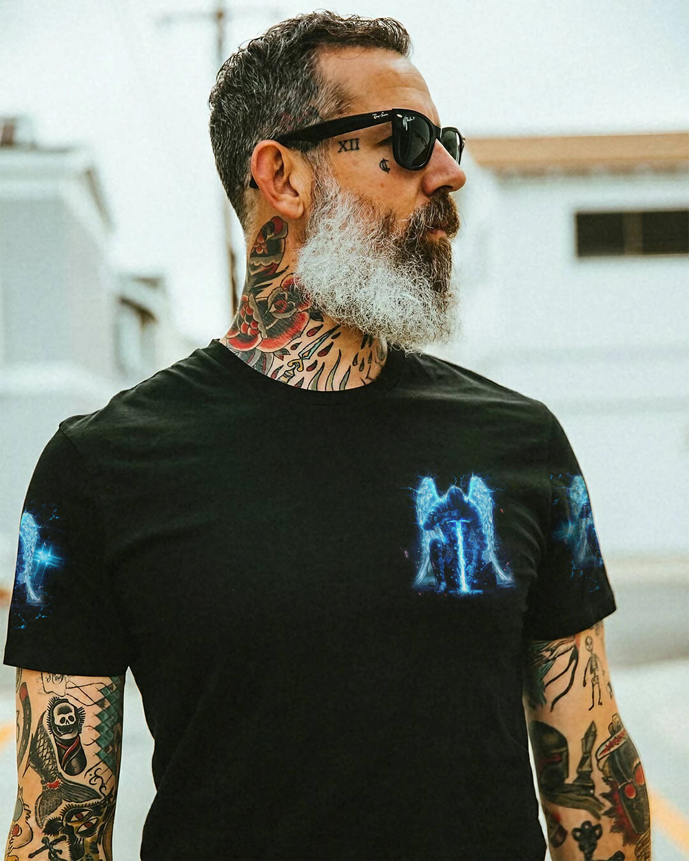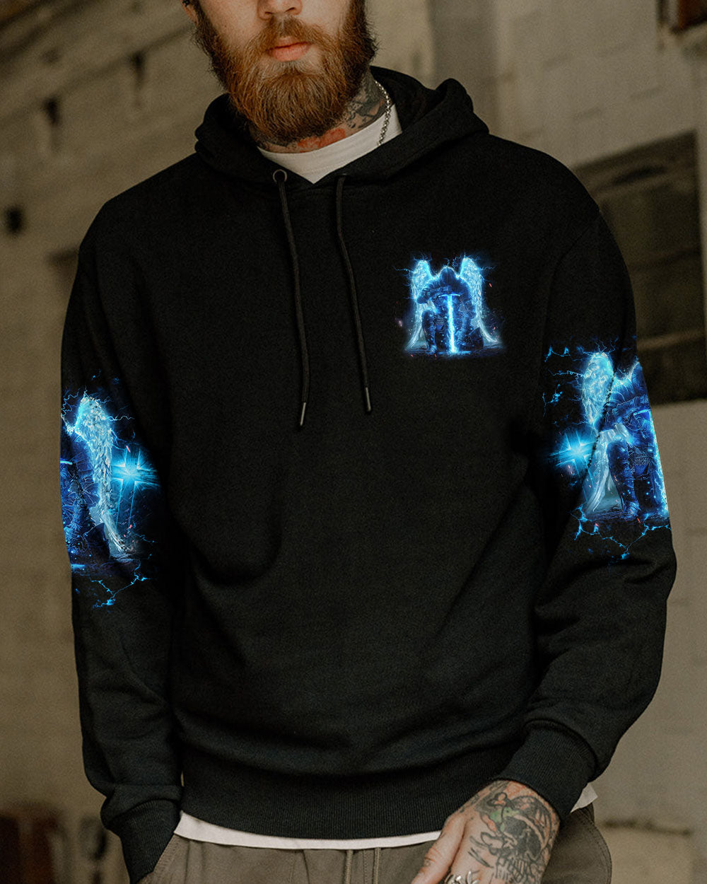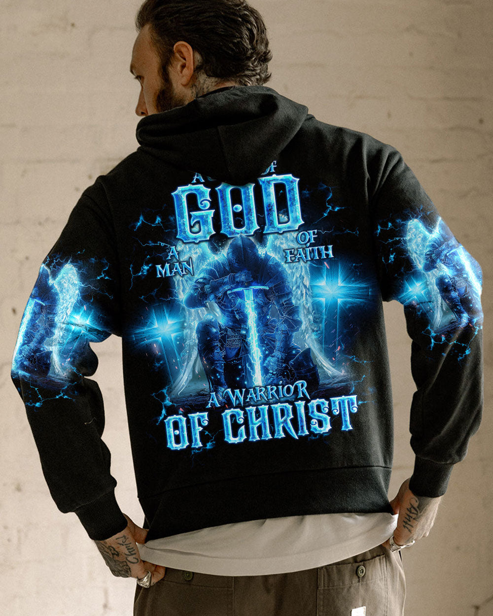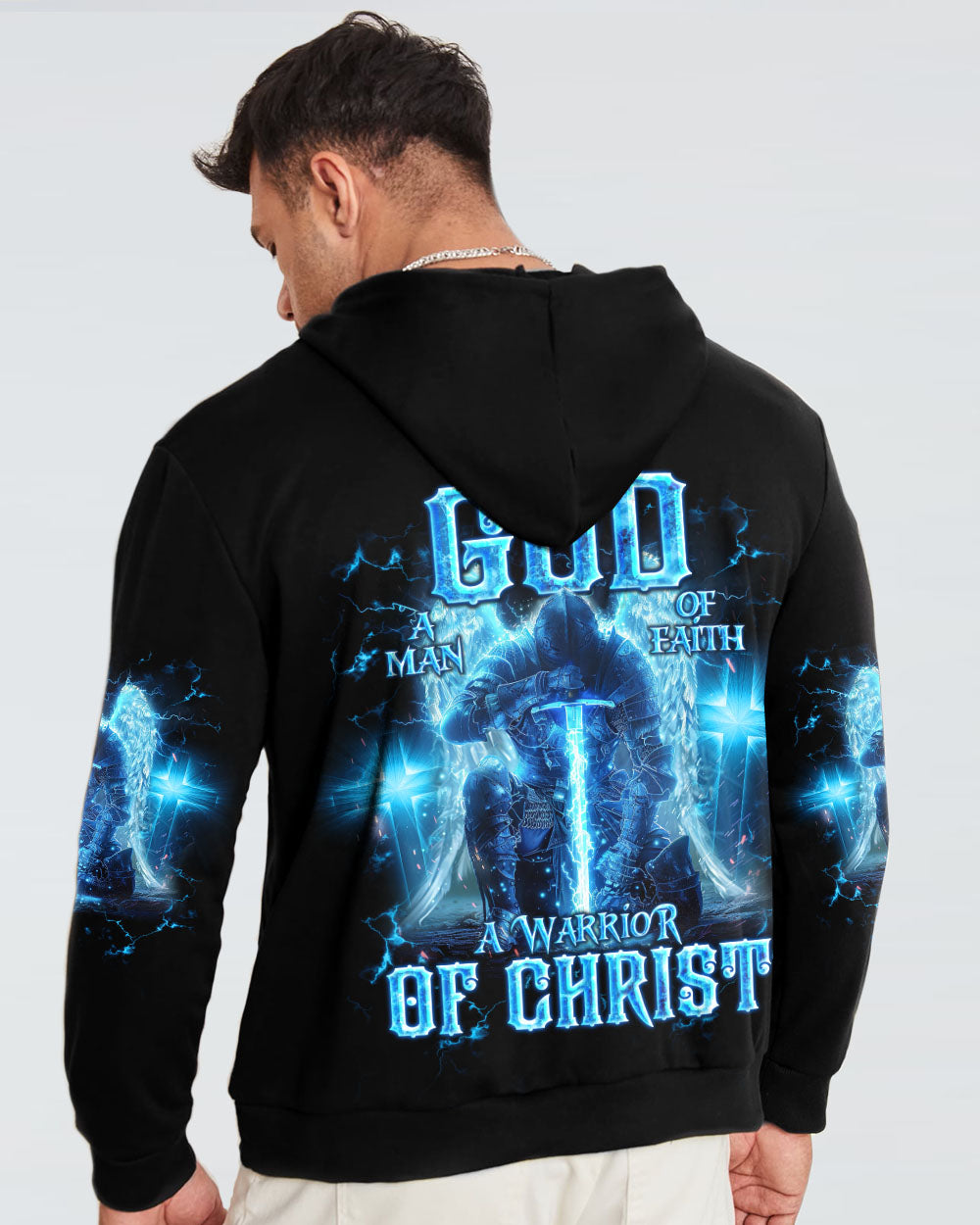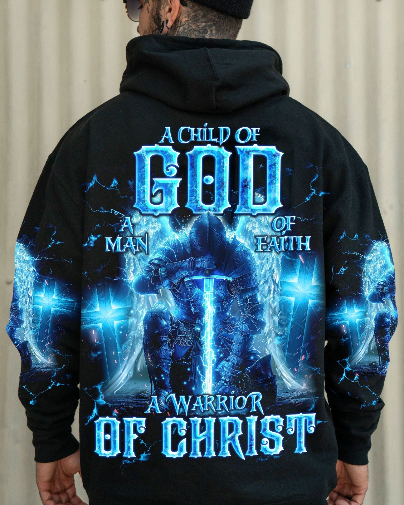 Embody unwavering devotion and strength in your faith with this Warrior of Christ Men's All Over Print Shirt. Featuring a depiction of a mighty warrior with glowing wings kneeling before Jesus, the shirt bears the powerful saying "a child of God, a man of faith, a warrior of Christ". Stand firm and fight for righteousness as a cherished child of God and a valiant warrior.