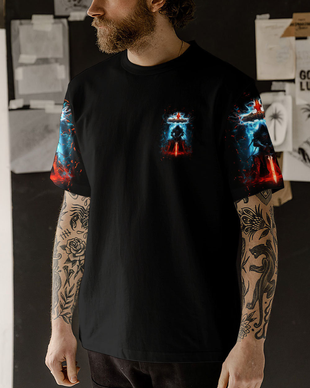 Make a statement with this powerful design inspired by the faith and redemption of Jesus Christ. This all-over print shirt is a stylish and meaningful way to show your devotion and embrace the power of grace and love. It's perfect for both devout believers and lovers of meaningful designs alike. Show your faith and carry the message of Jesus with you always.