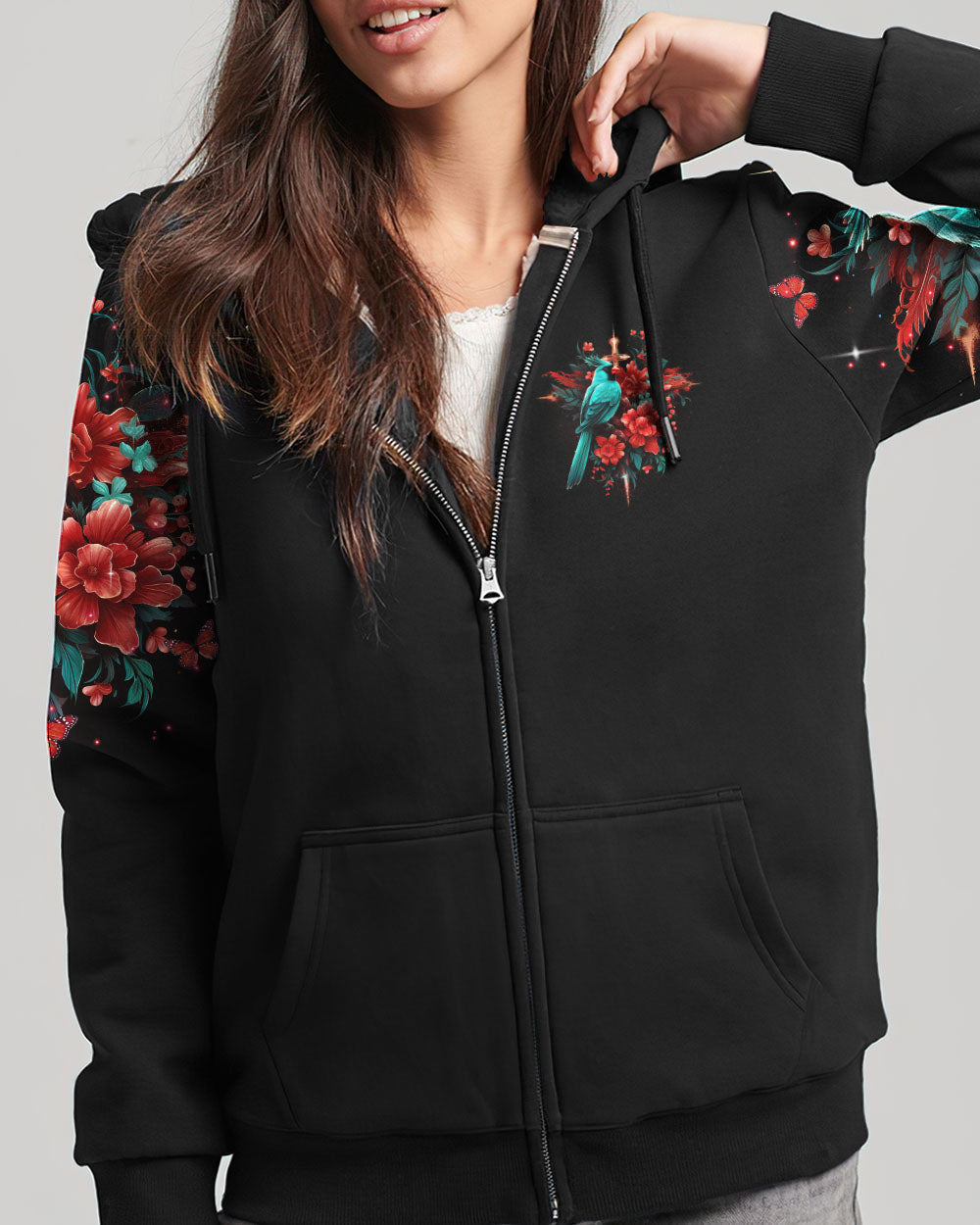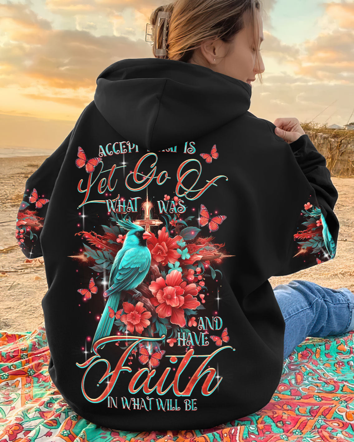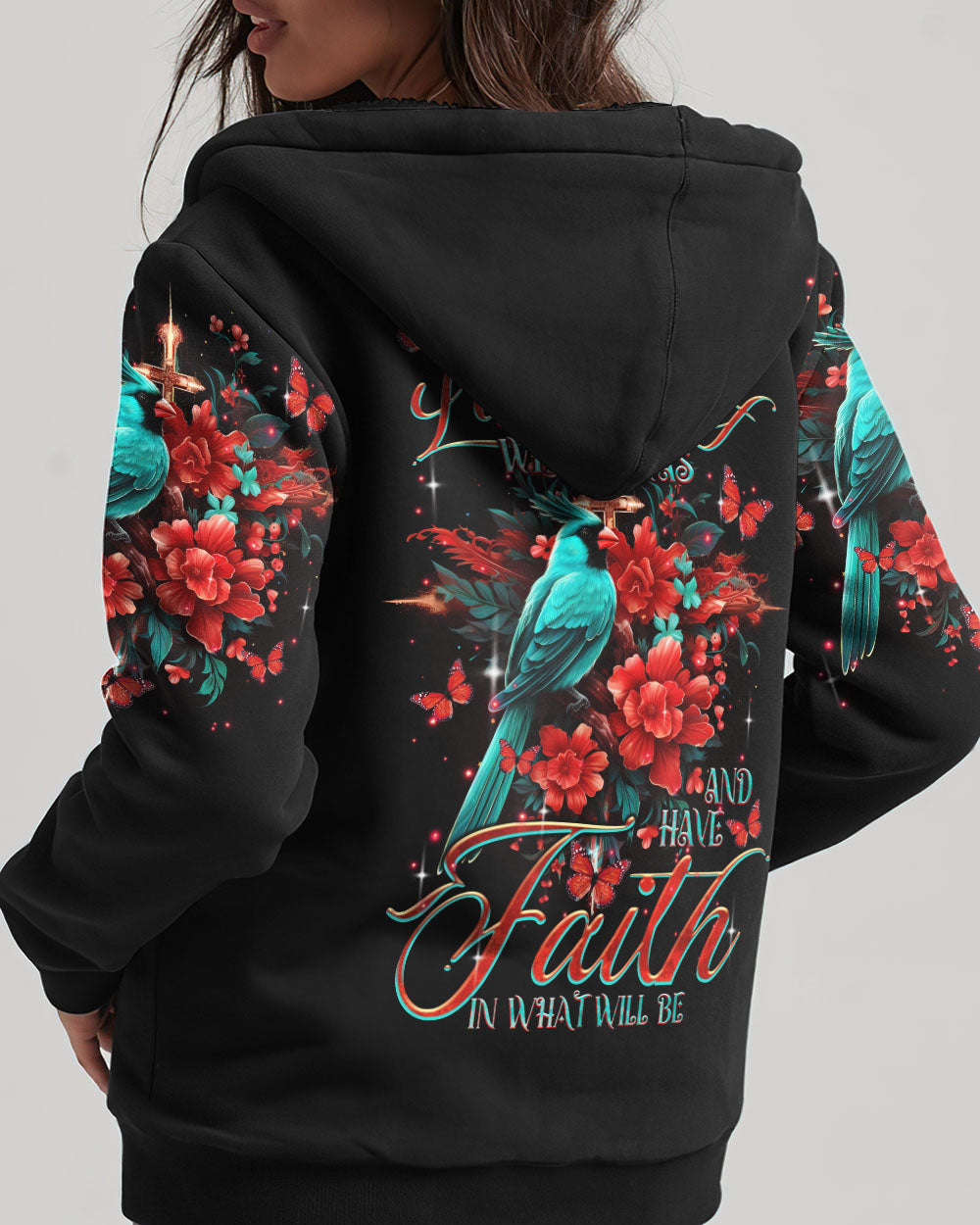 "Find inspiration in our Cardinal Women's All Over Print Shirt. Embrace the message of acceptance and renewal with a stunning cross design and the symbolic red cardinal bird. Let go of the past, have faith in the future - and trust in a divine plan. Available now - embrace the journey."