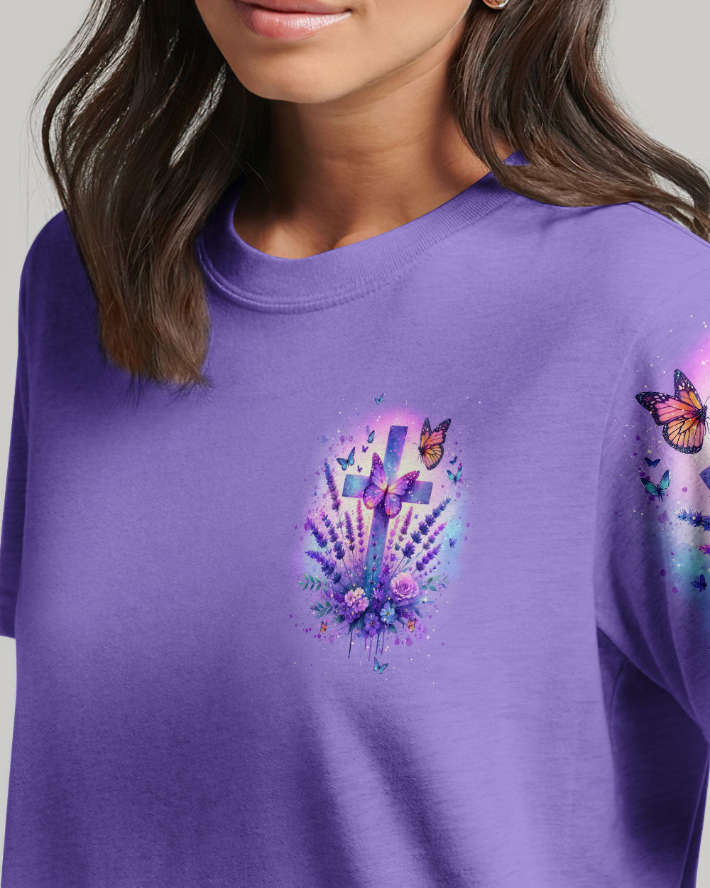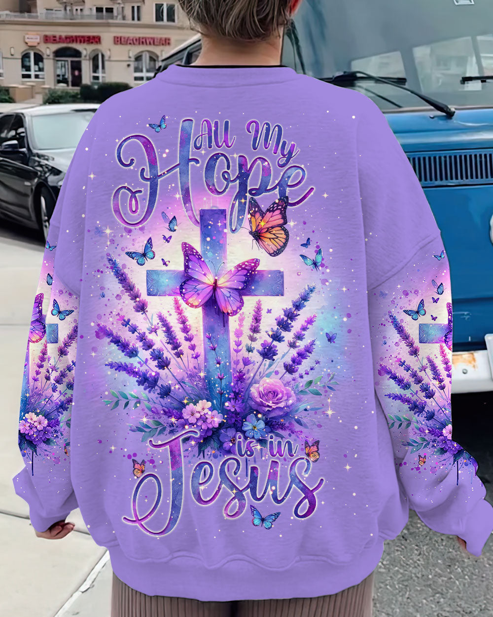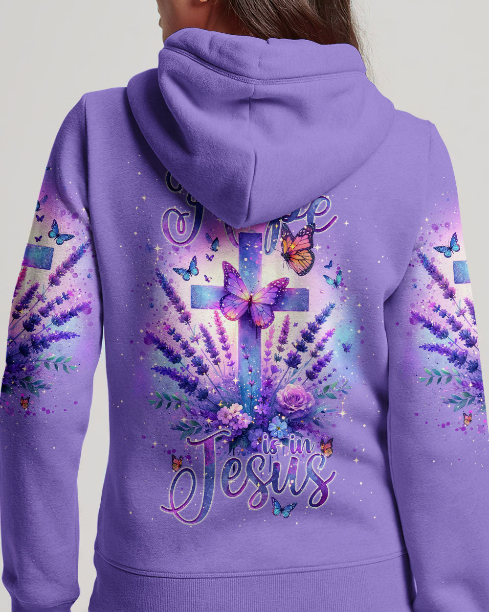 Experience serenity and strengthen your faith with our All My Hope Is In Jesus Lavender Women's All Over Print Shirt. The intertwined cross and lavender design embodies a deep belief in Jesus and the saying, "All my hope is in Jesus," promises unwavering hope, strength, and comfort during uncertain times.