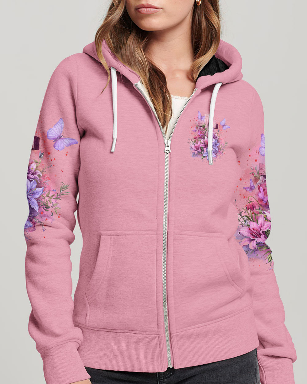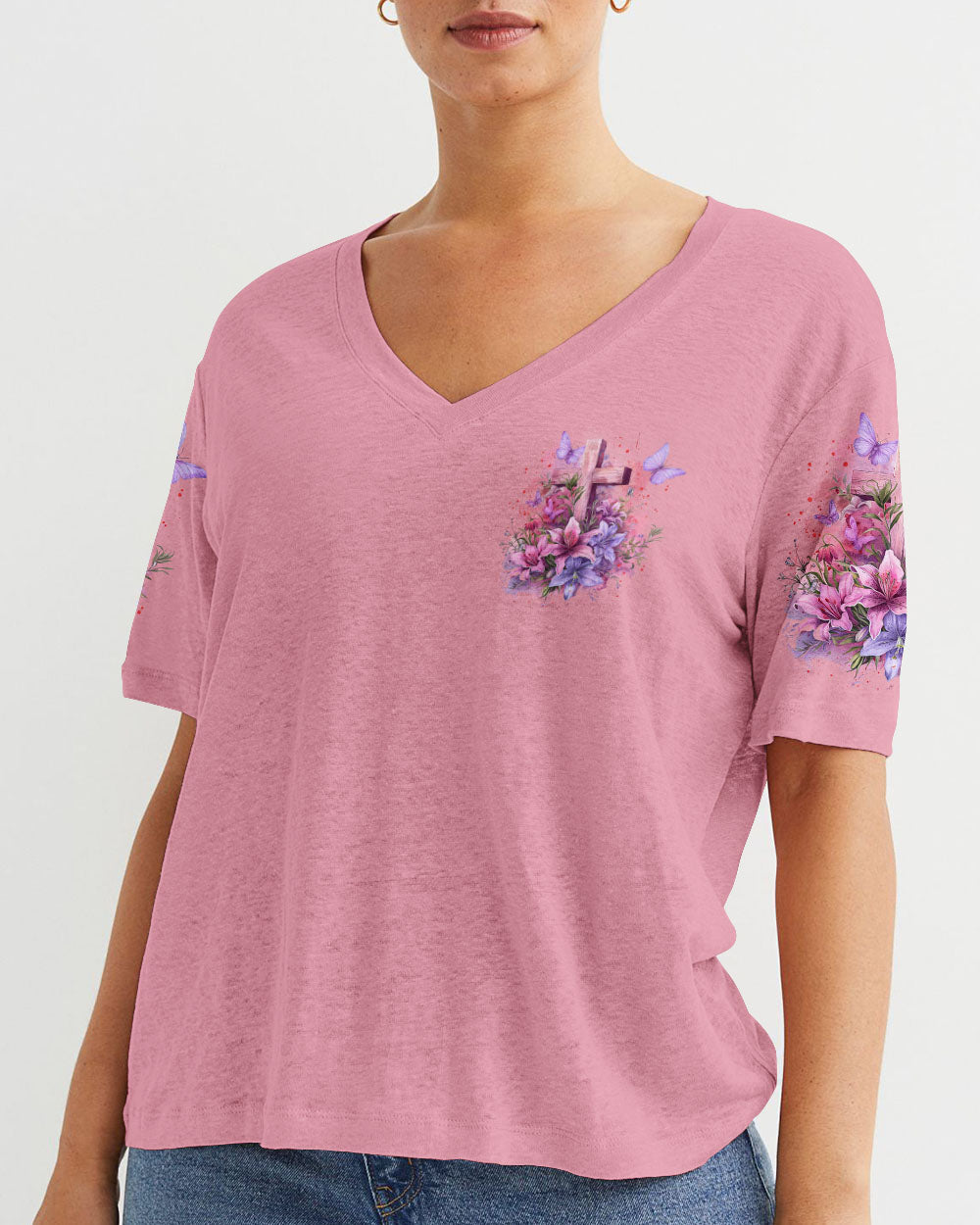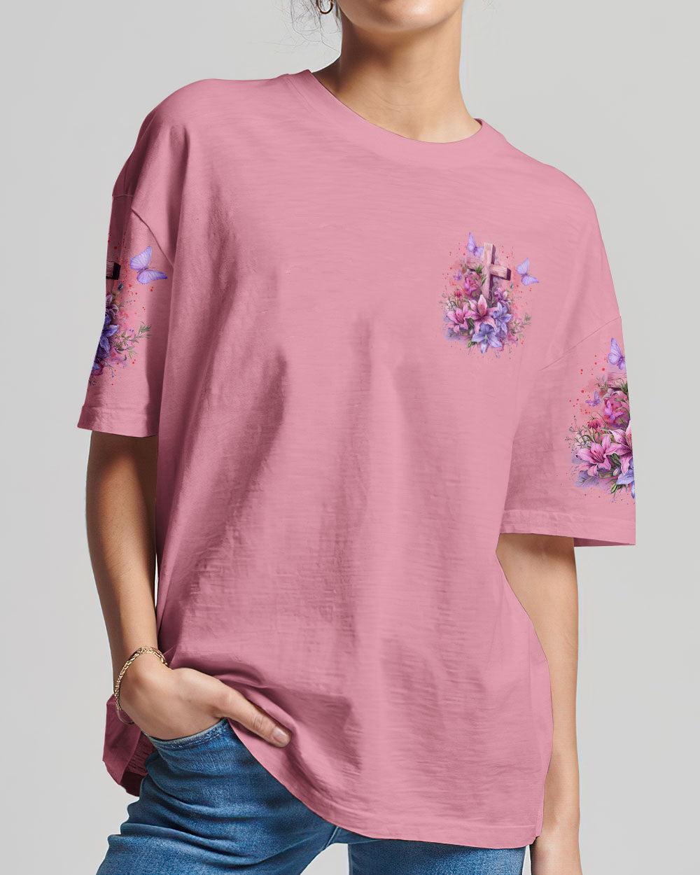 Celebrate your Christian faith with our stunning women's all over print shirt. Featuring crosses, lilies, flowers, and butterflies, this design symbolizes spiritual resurrection, growth, and transformation. The heartfelt quote, "Always in my prayers," captures the essence of devotion and connection with God through prayer. Embrace this impressive expression of faith and feel reminded of God's constant presence in your life.