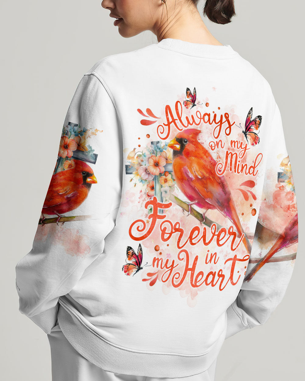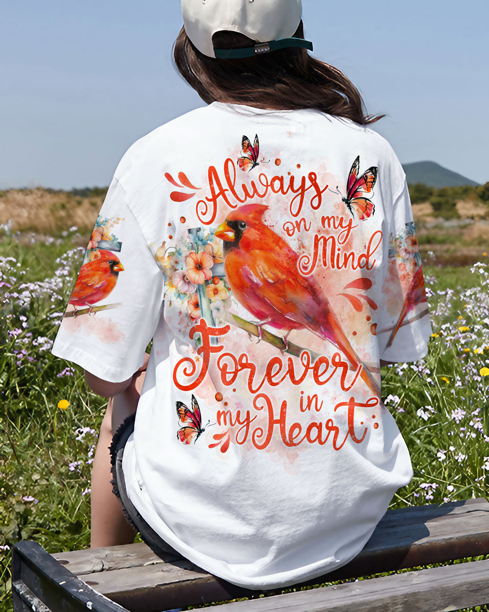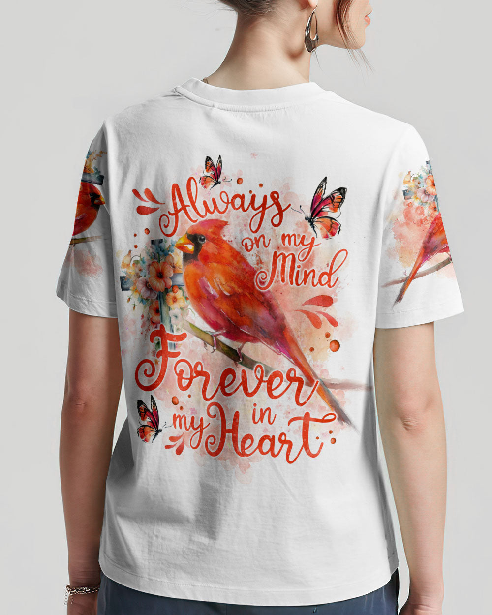 Embrace the deep bond of faith and love with our exquisite watercolor cardinal bird design, symbolizing God's everlasting presence in your heart. This design embodies the timeless message of "Always On My Mind Forever In My Heart," representing cherished memories of loved ones and the steadfast belief that God's love is ever-present. Let it serve as a touching reminder that faith and love are intertwined, guiding you through life's journey with divine comfort and the enduring embrace of cherished relationships.