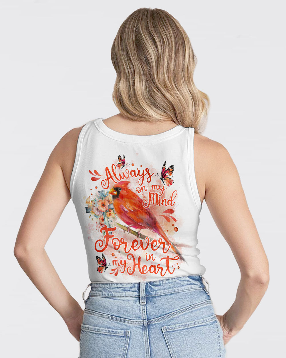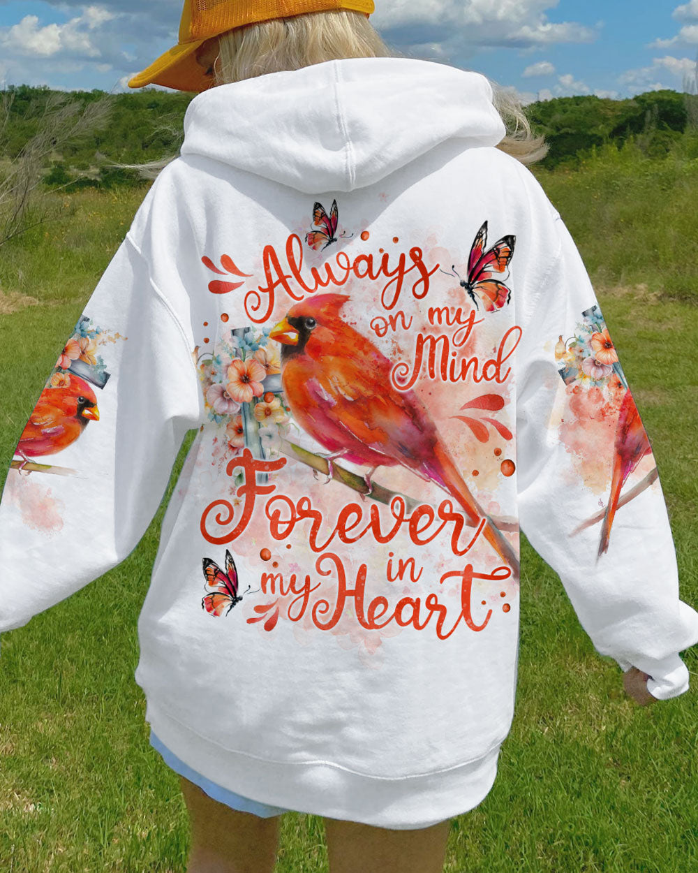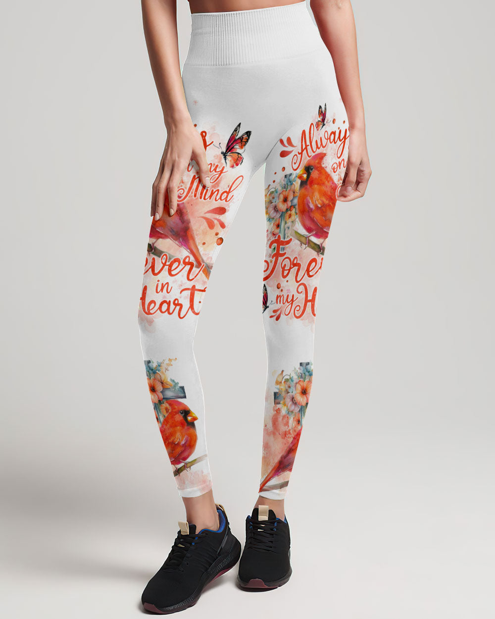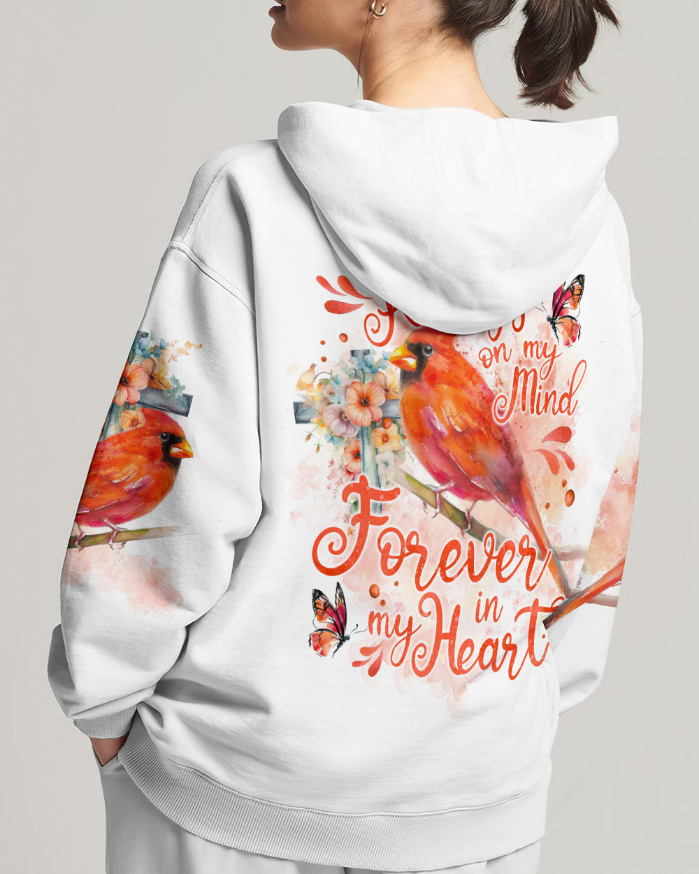 Embrace the deep bond of faith and love with our exquisite watercolor cardinal bird design, symbolizing God's everlasting presence in your heart. This design embodies the timeless message of "Always On My Mind Forever In My Heart," representing cherished memories of loved ones and the steadfast belief that God's love is ever-present. Let it serve as a touching reminder that faith and love are intertwined, guiding you through life's journey with divine comfort and the enduring embrace of cherished relationships.