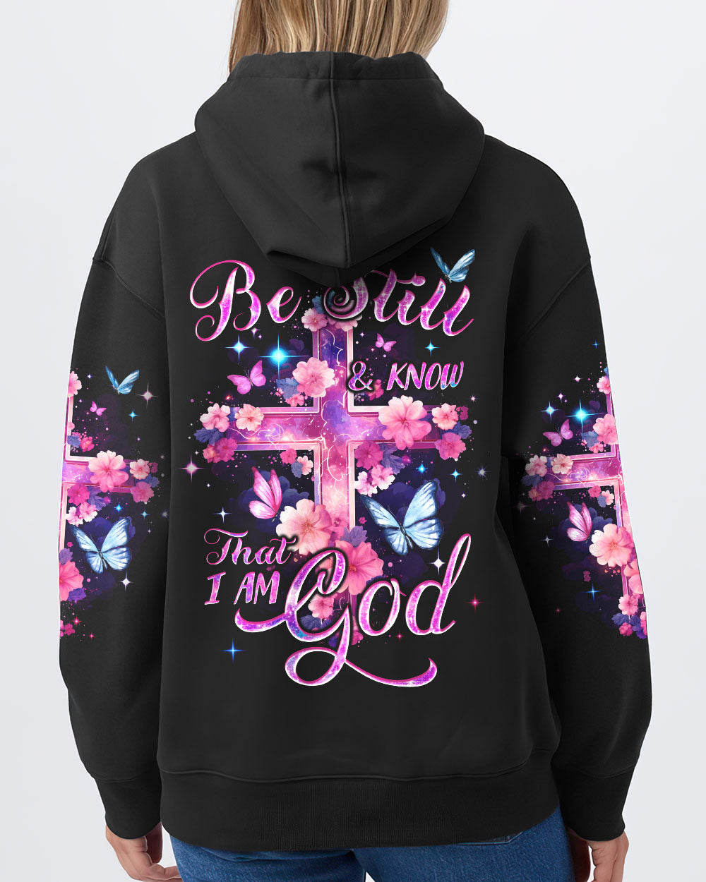 Step into the serene beauty of our Christian faith design. The centerpiece is a cross adorned with a tapestry of vibrant flowers under a celestial canopy of twinkling stars, accompanied by the comforting message, 'Be Still And Know That I Am God.' This captivating composition embodies faith, tranquility, and the enduring grace of God. Discover solace and wisdom in moments of quiet reflection with this inspiring design. Don't miss the chance to be inspired