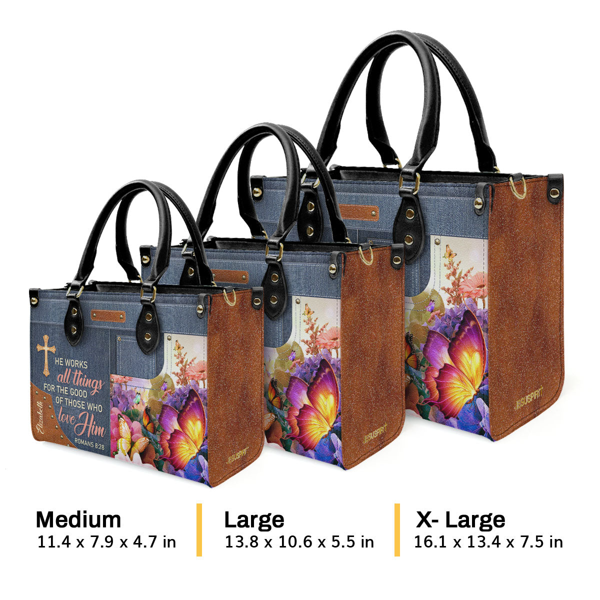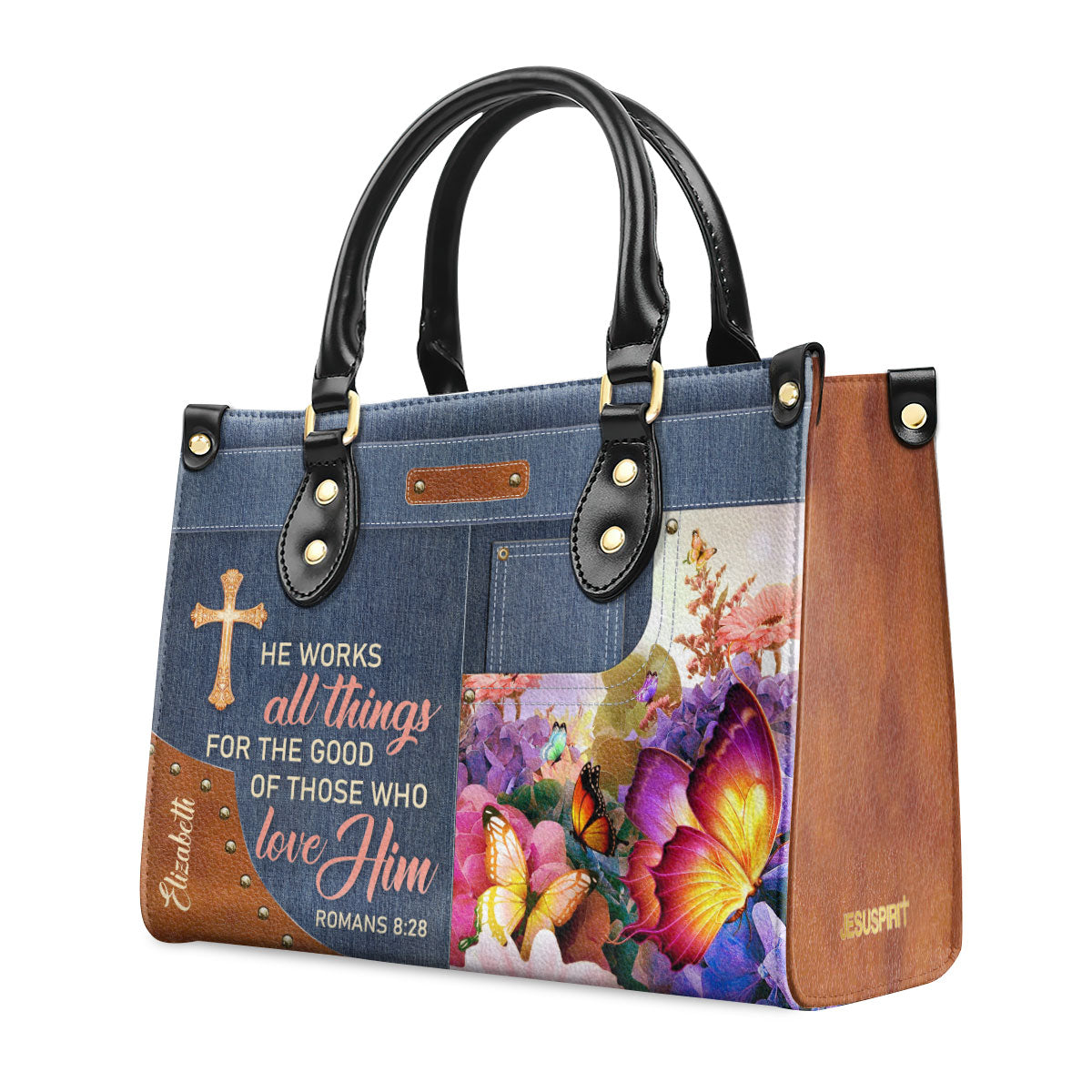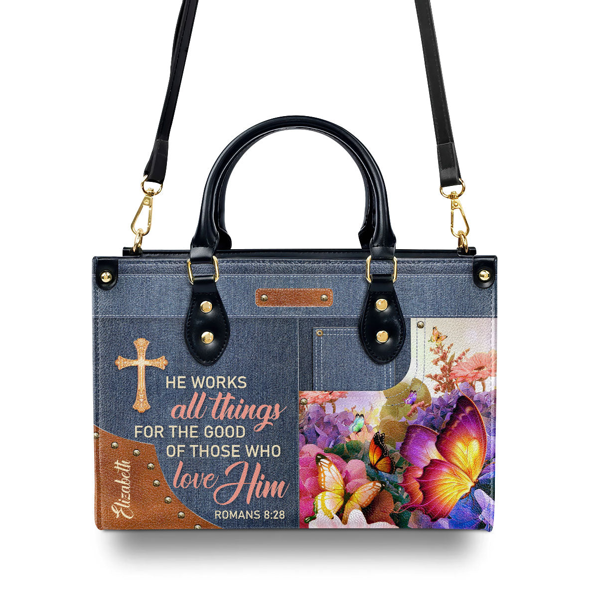 Beautiful Personalized Butterfly Leather Handbag - He Works All Things For The Good Of Those Who Love Him NUM315