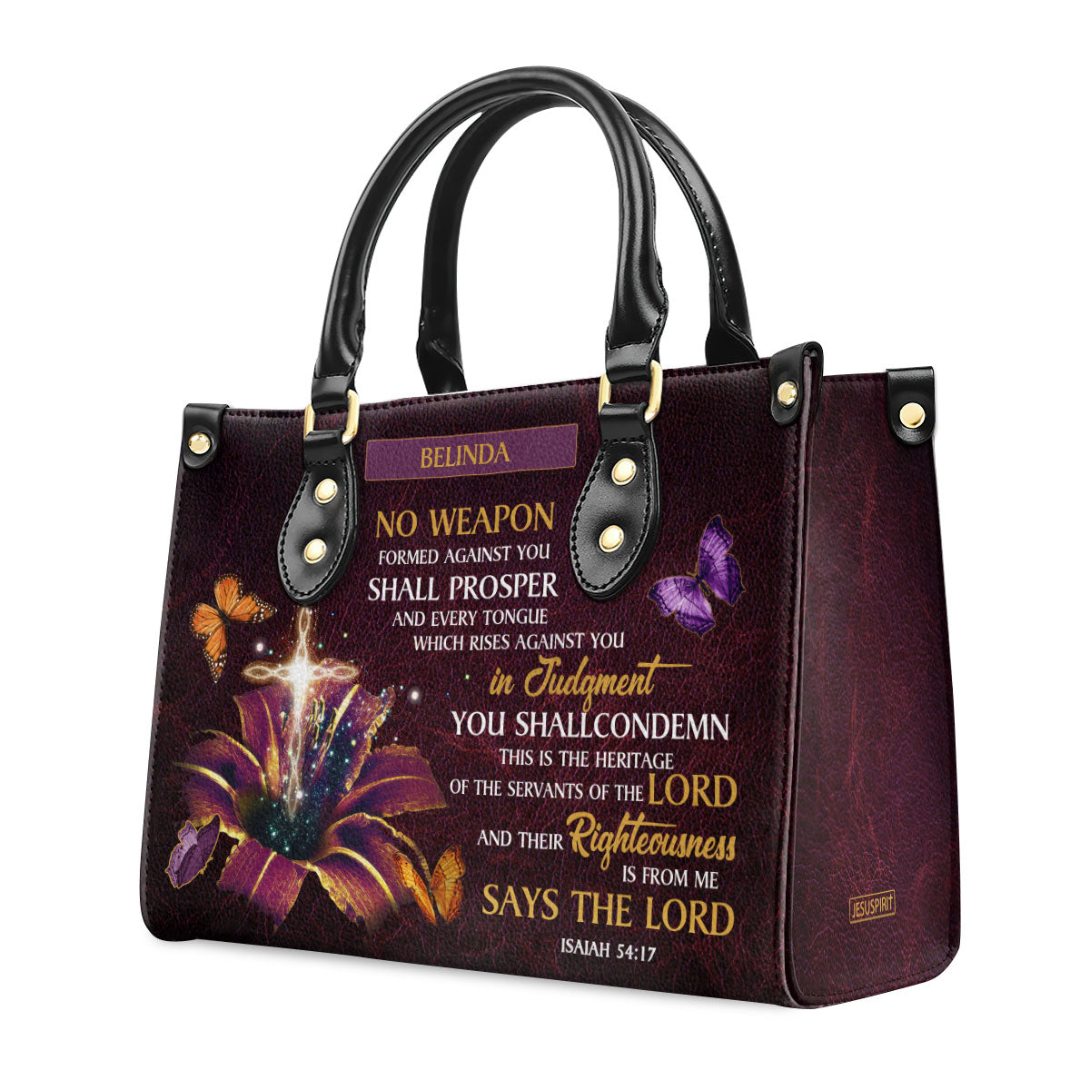 Beautiful Personalized Leather Handbag - No Weapon Formed Against You Shall Prosper NUM394