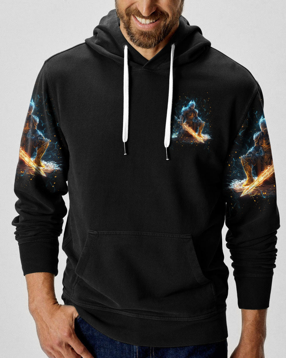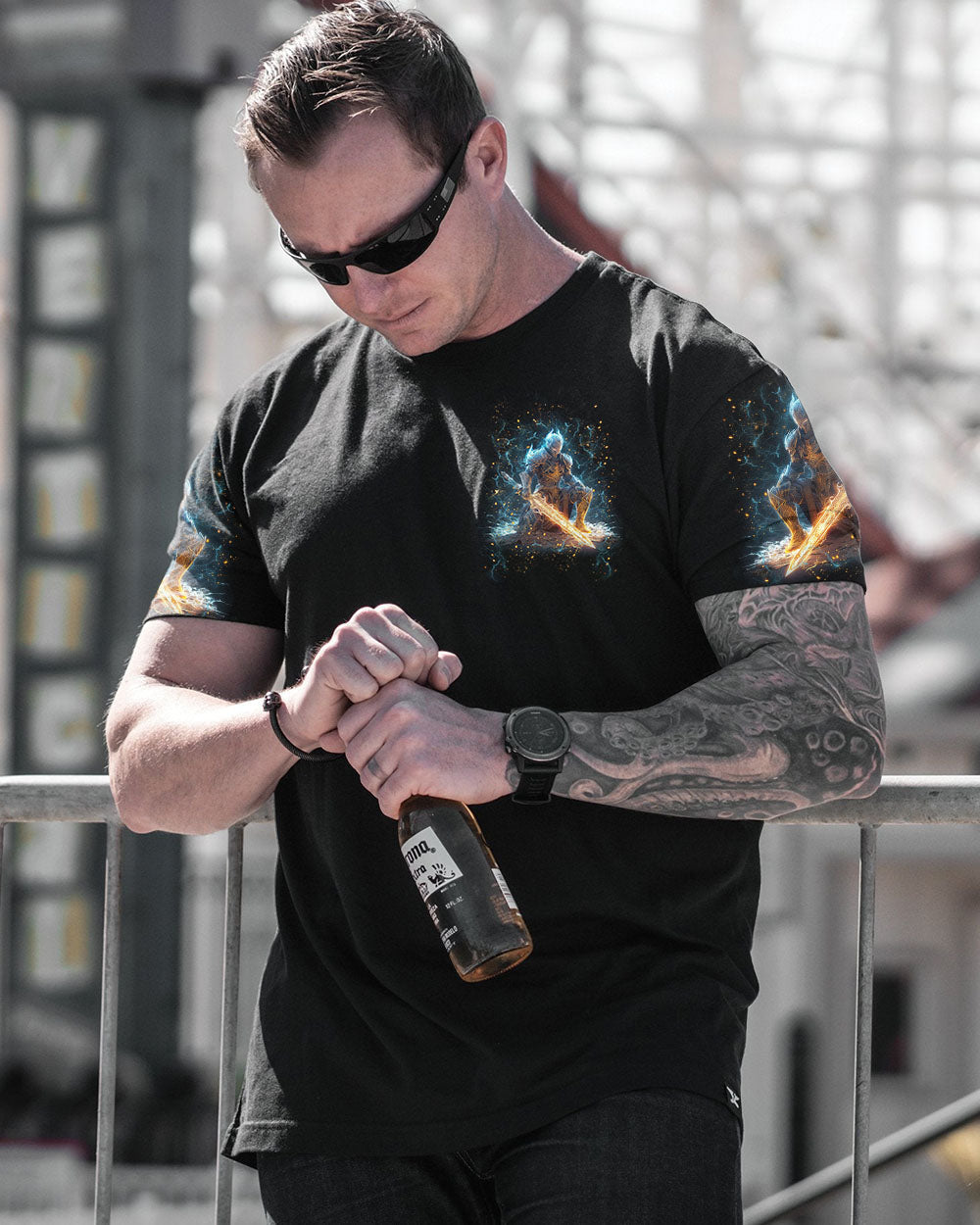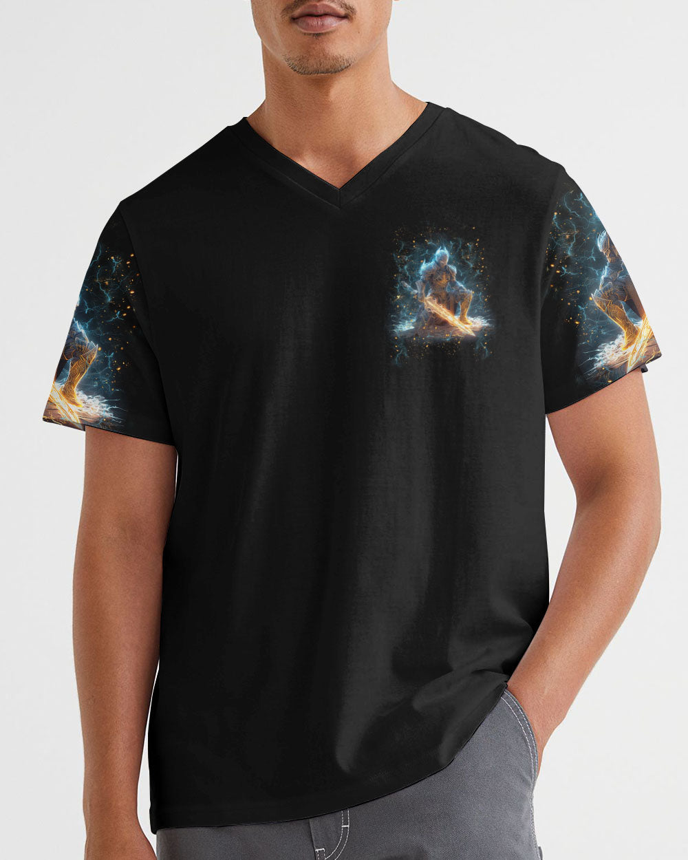 This men's all-over print shirt features a powerful design that elevates your faith with a resolute knight, ready for battle with a sword in hand beneath a thunderous sky. The inspiring words "Blessed be the Lord, my Rock, who trains my hands for war, my fingers for battle" remind us to stand firm with unwavering faith and strength in the face of life's battles. Get your faith-inspired design today.
