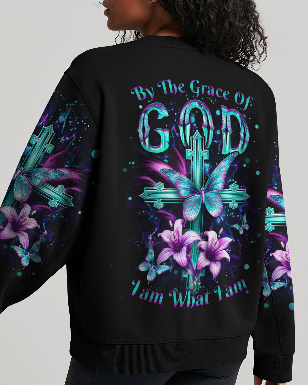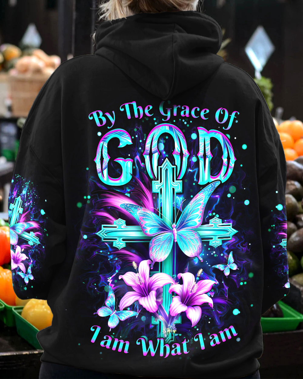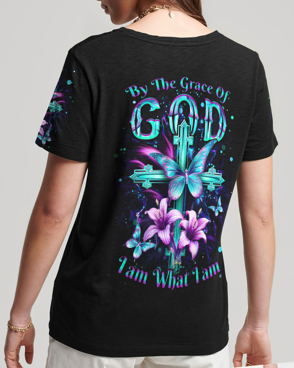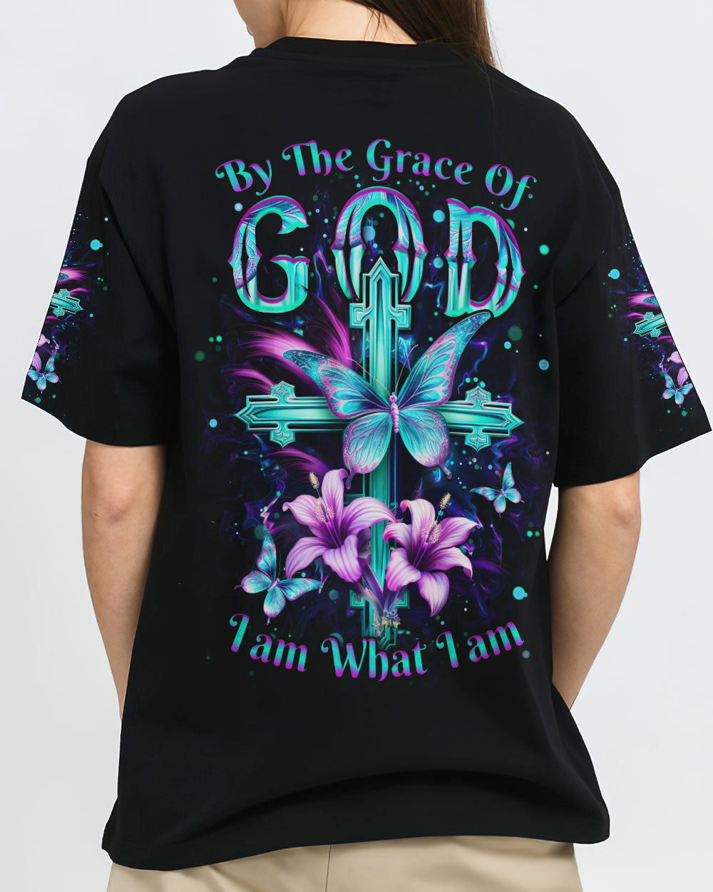 Feel inspired in our By The Grace Of God Women's All Over Print Shirt. This faith-filled design features a radiant cross adorned with delicate lily flowers, surrounded by graceful butterflies. The profound quote “By the grace of God, I am what I am” encapsulates the transformative power of divine grace and unwavering faith. Carry a beautiful reminder of your spiritual journey with you and embrace the grace of God.