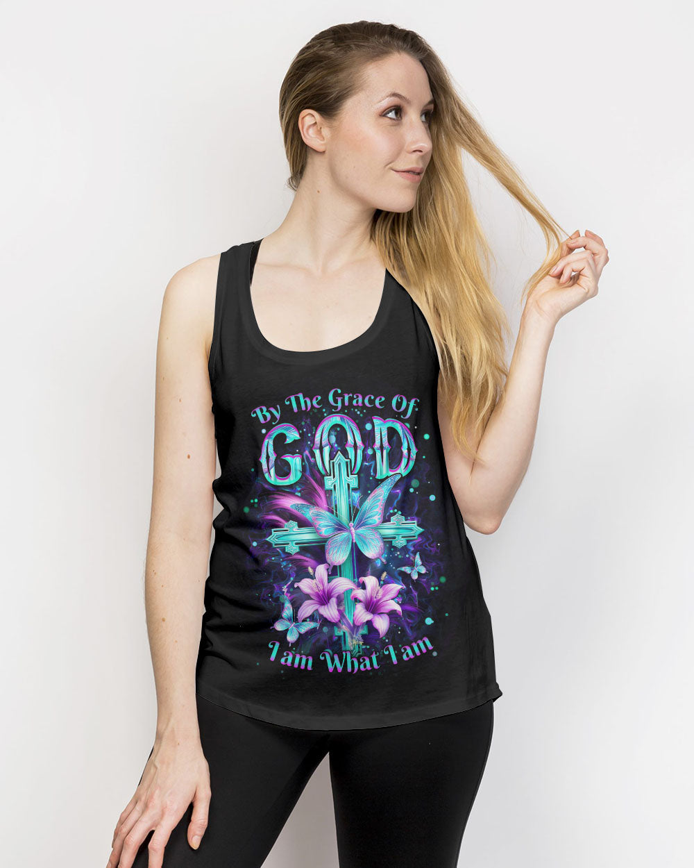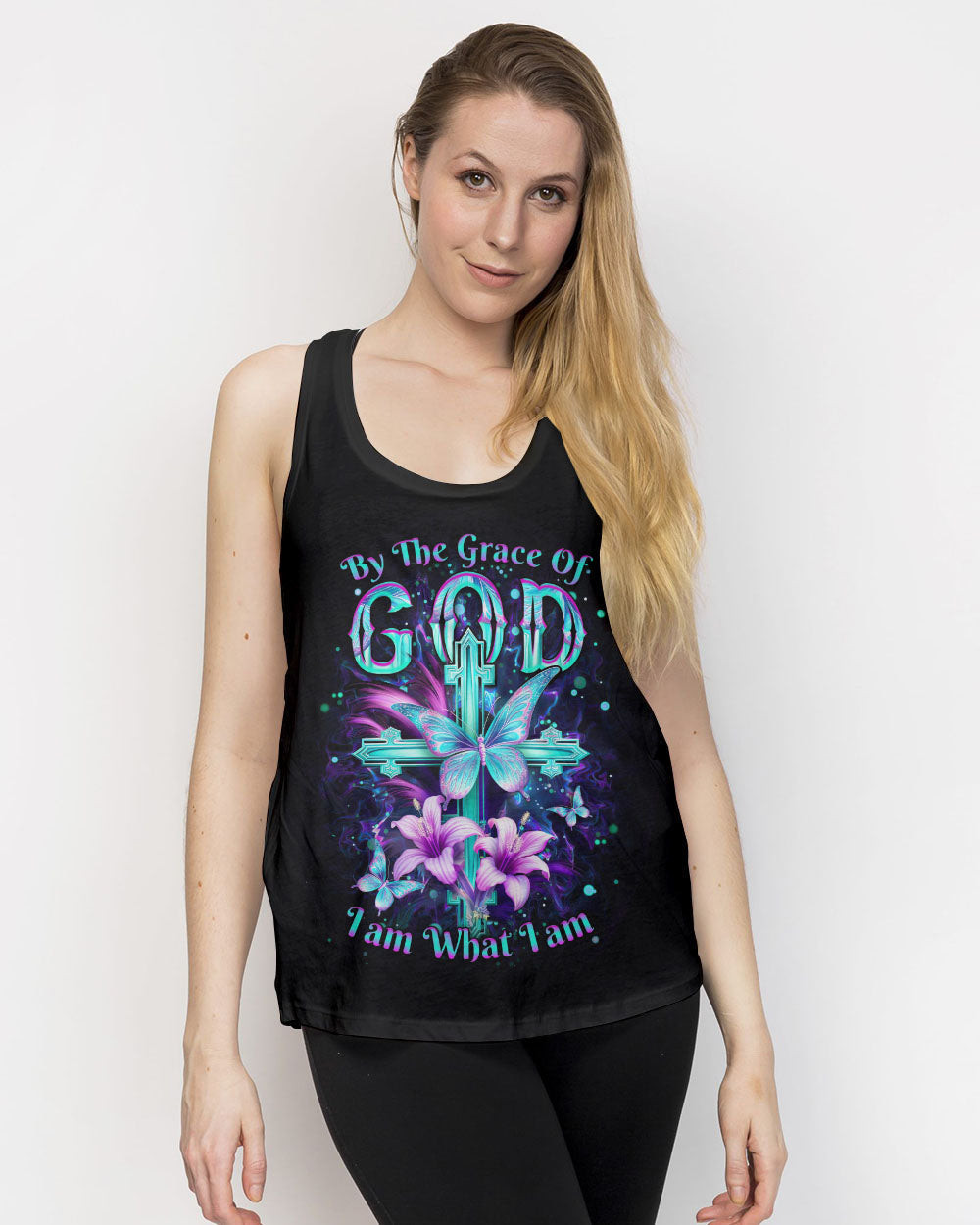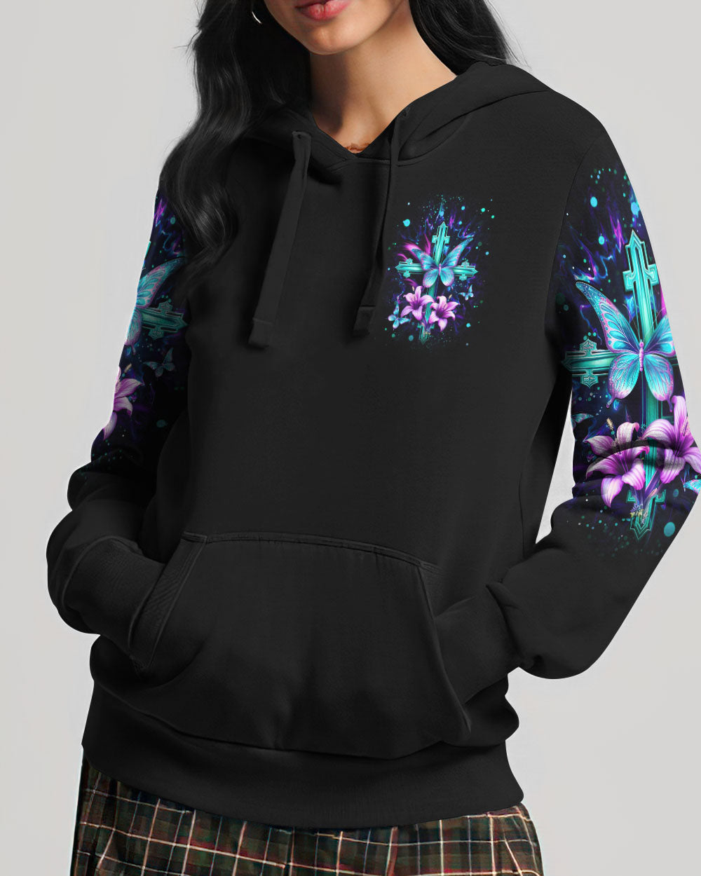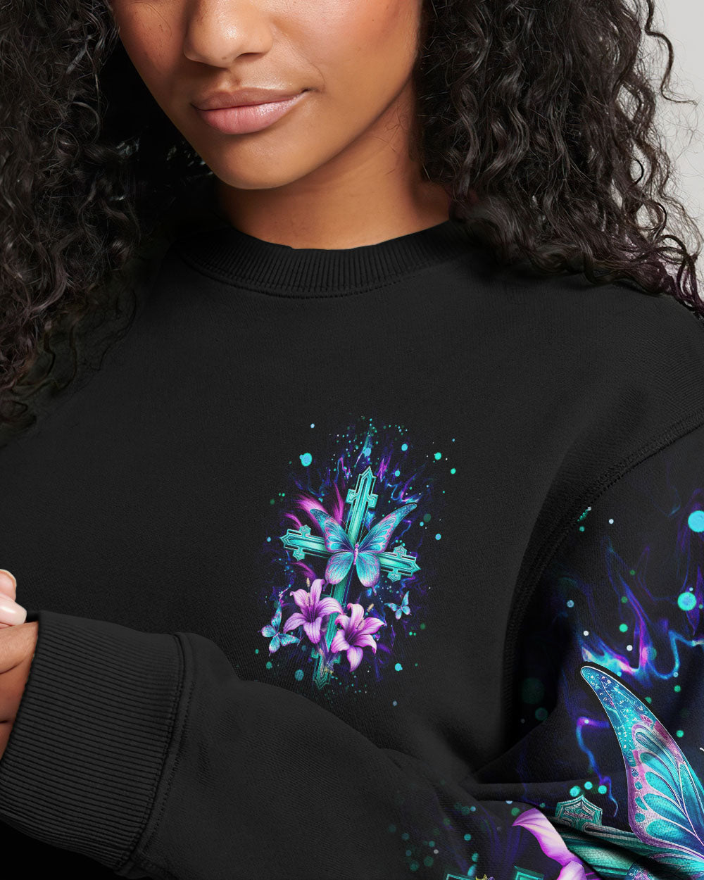 Feel inspired in our By The Grace Of God Women's All Over Print Shirt. This faith-filled design features a radiant cross adorned with delicate lily flowers, surrounded by graceful butterflies. The profound quote “By the grace of God, I am what I am” encapsulates the transformative power of divine grace and unwavering faith. Carry a beautiful reminder of your spiritual journey with you and embrace the grace of God.