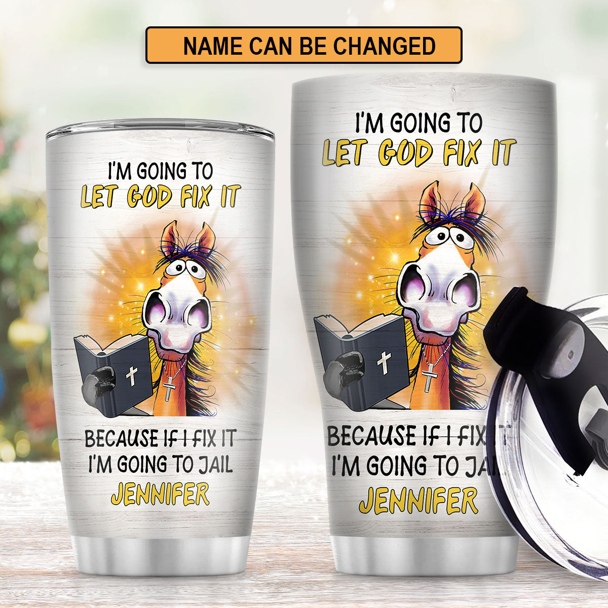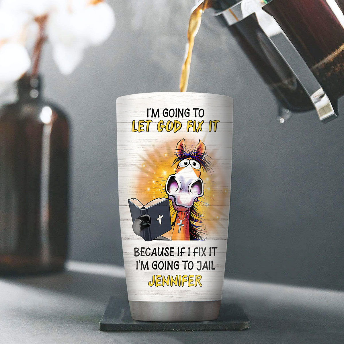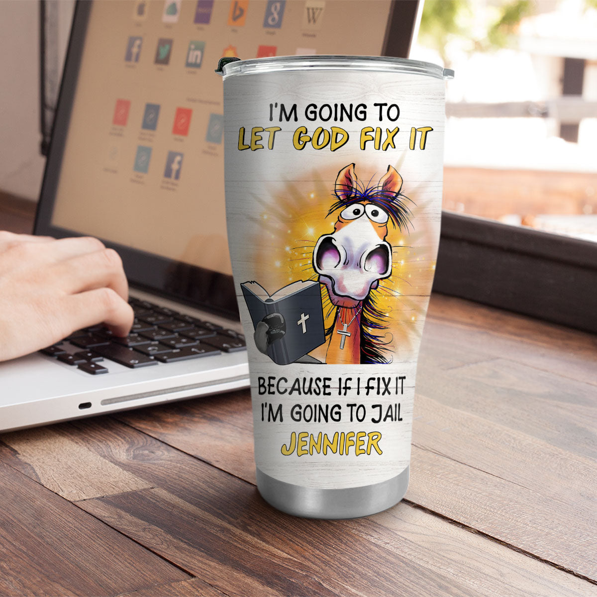 "I‘m going to let God fix it because if I fix it I’m going to jail" 20oz Christian Stainless Steel Tumbler is created by our Lifegifty designers that you couldn't find elsewhere.