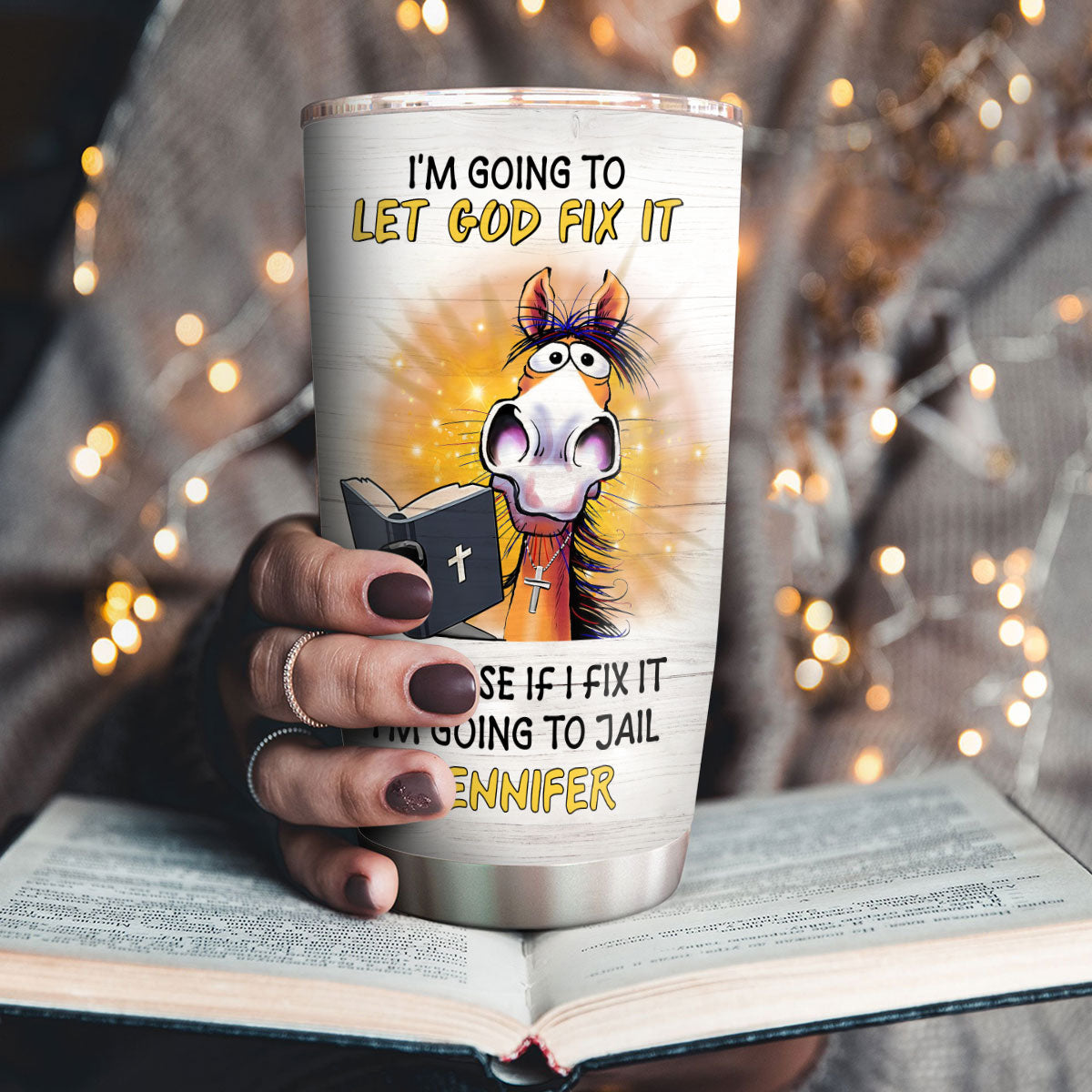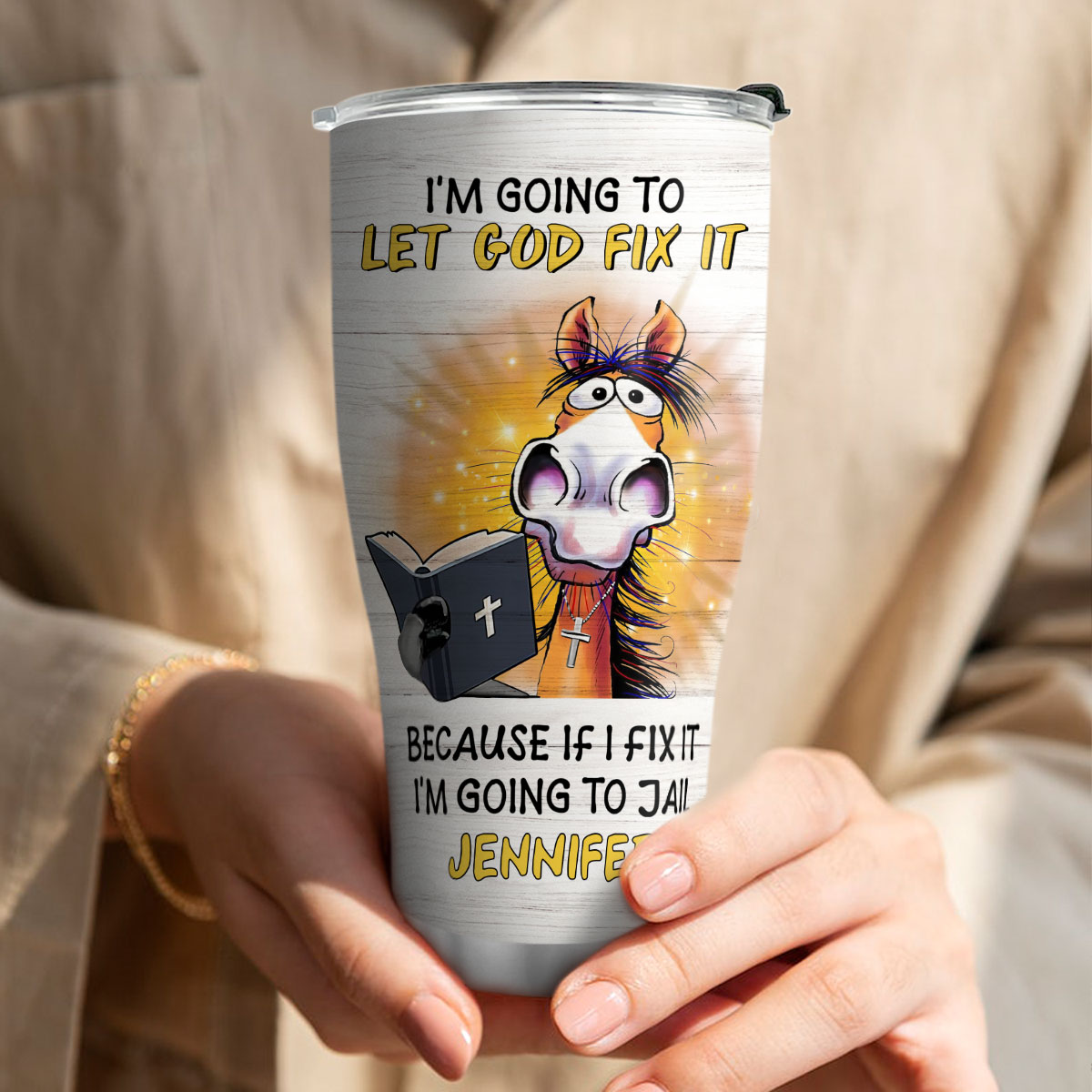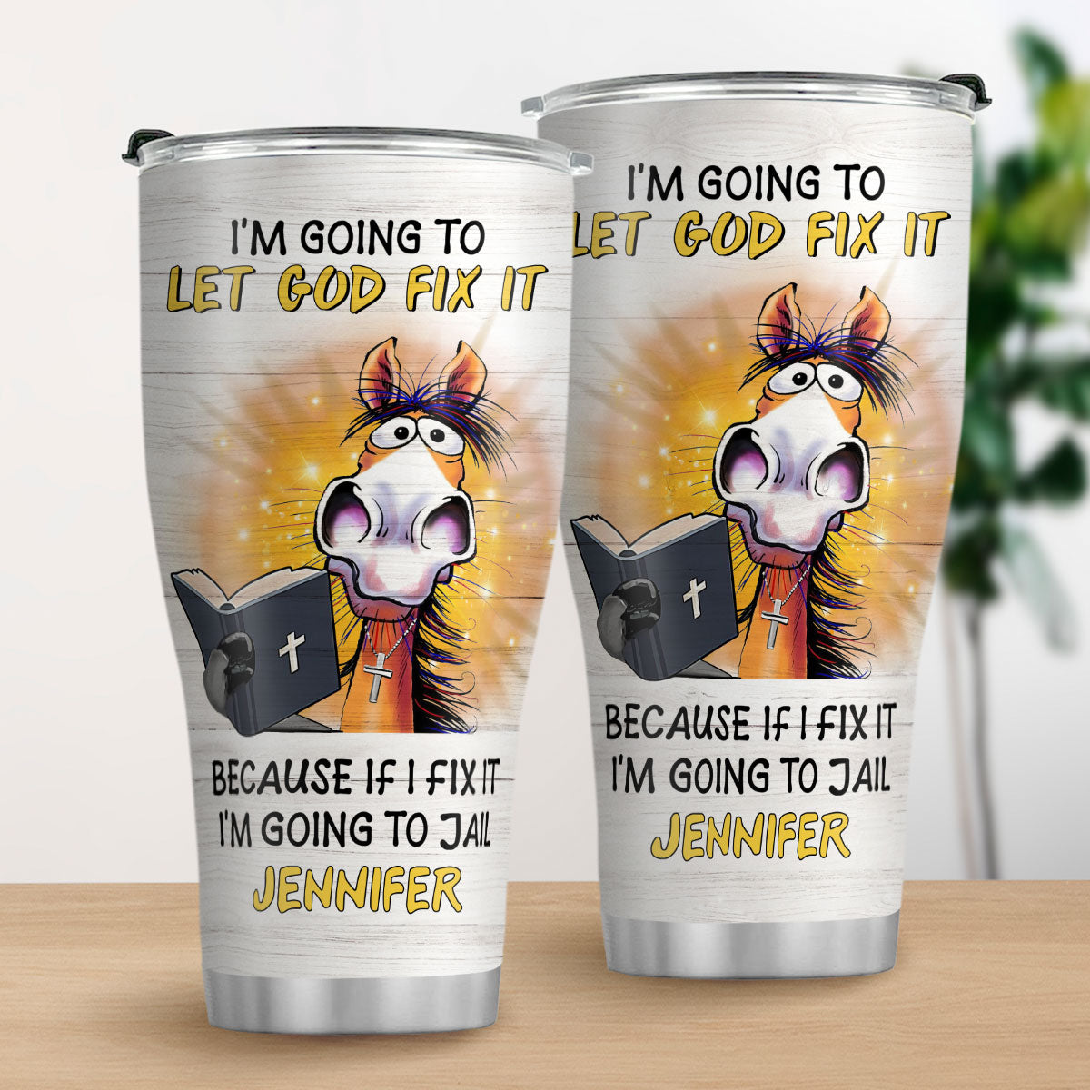 "I‘m going to let God fix it because if I fix it I’m going to jail" 20oz Christian Stainless Steel Tumbler is created by our Lifegifty designers that you couldn't find elsewhere.