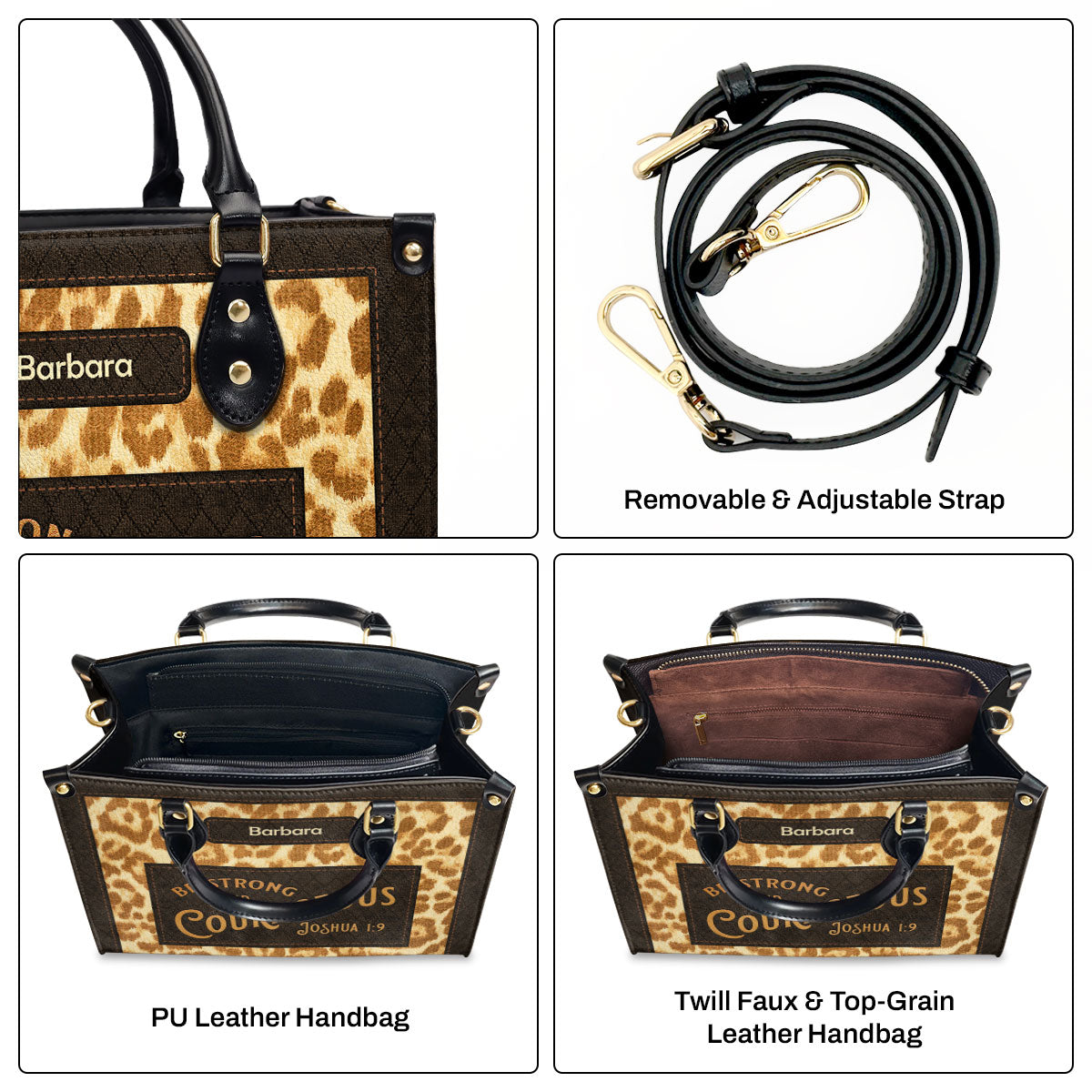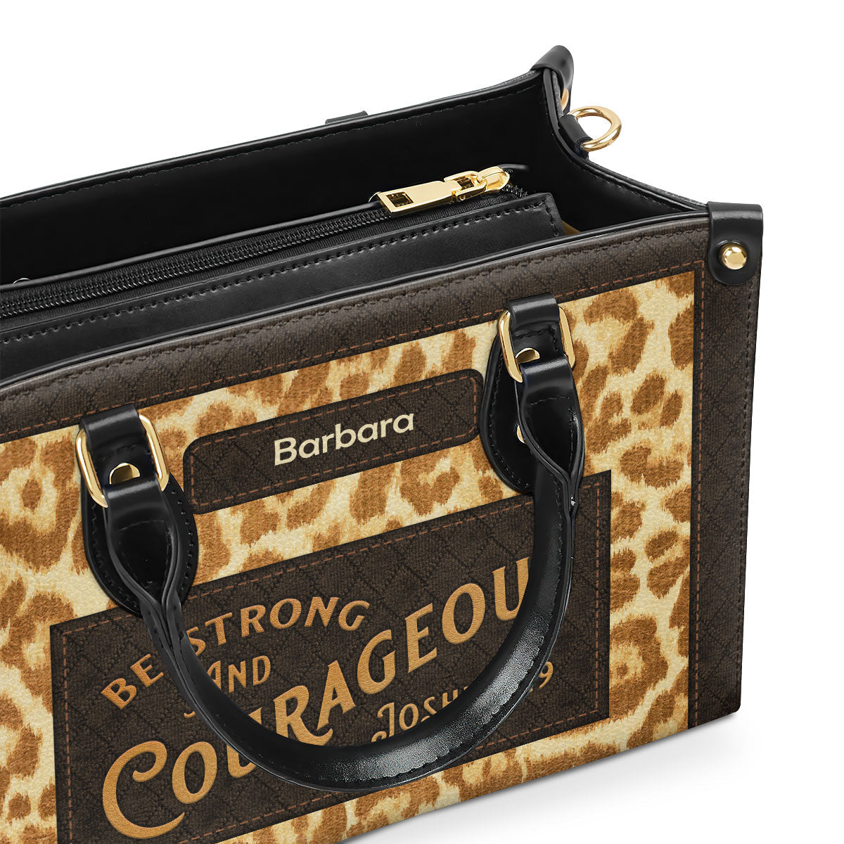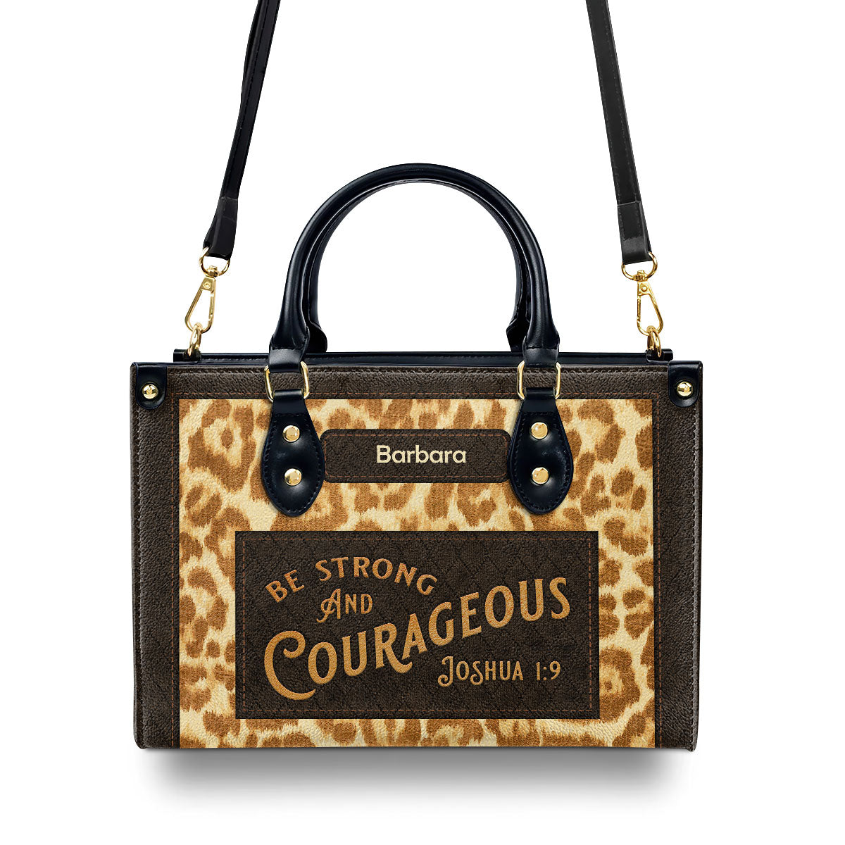Christian Gift For Women's Ministry | Be Strong And Courageous | Joshua 1:9 | Personalized Zippered Leather Handbag LHBHN803