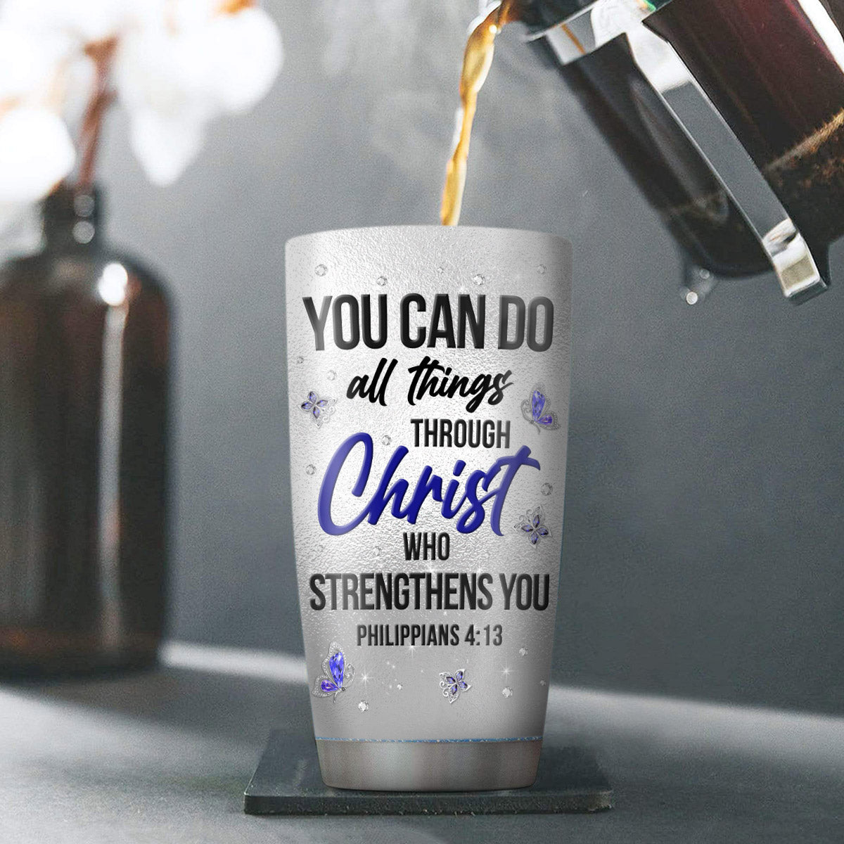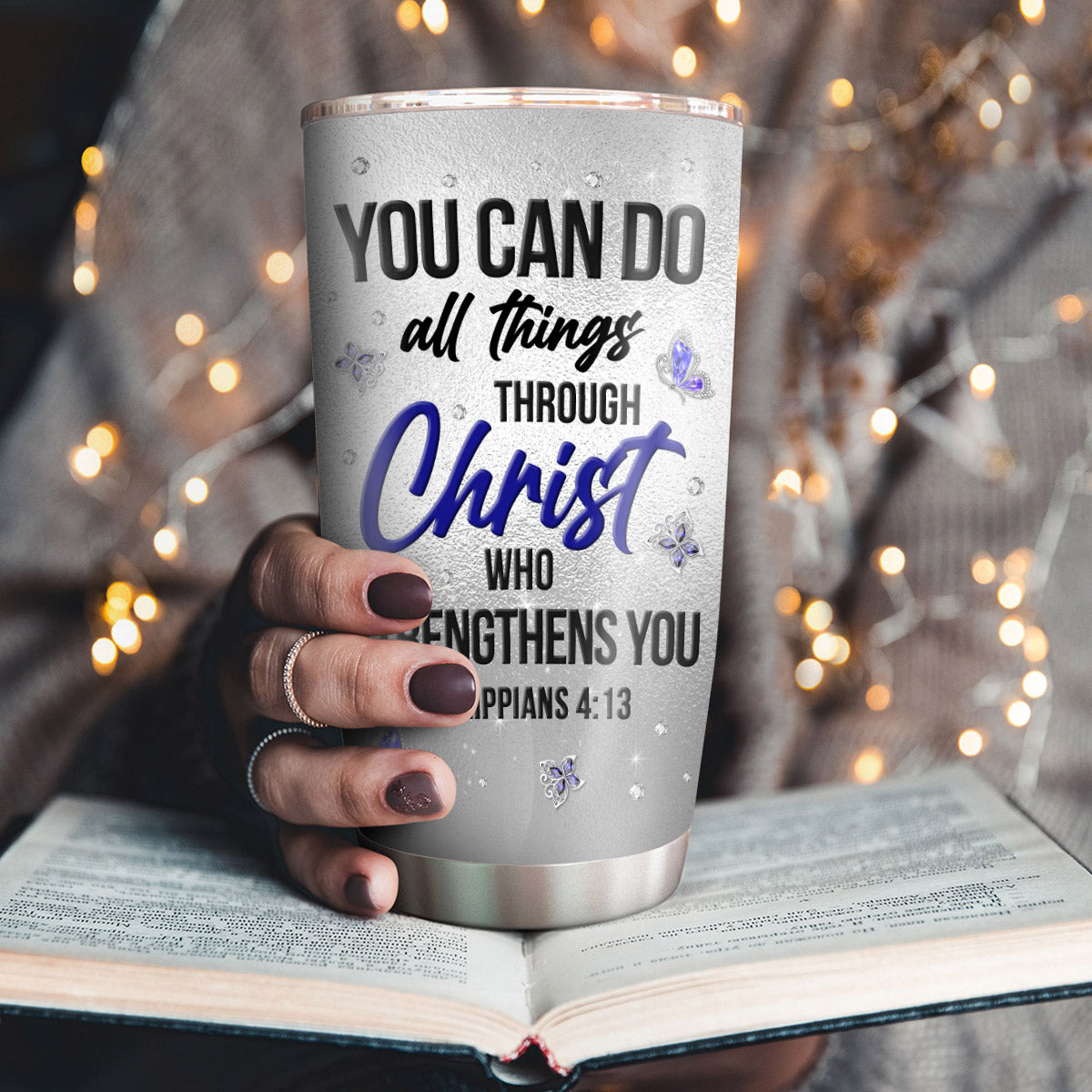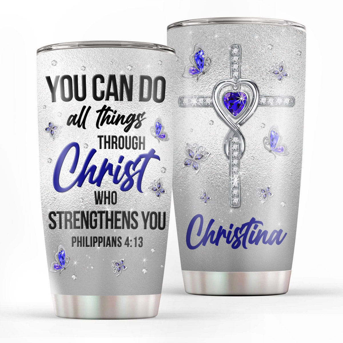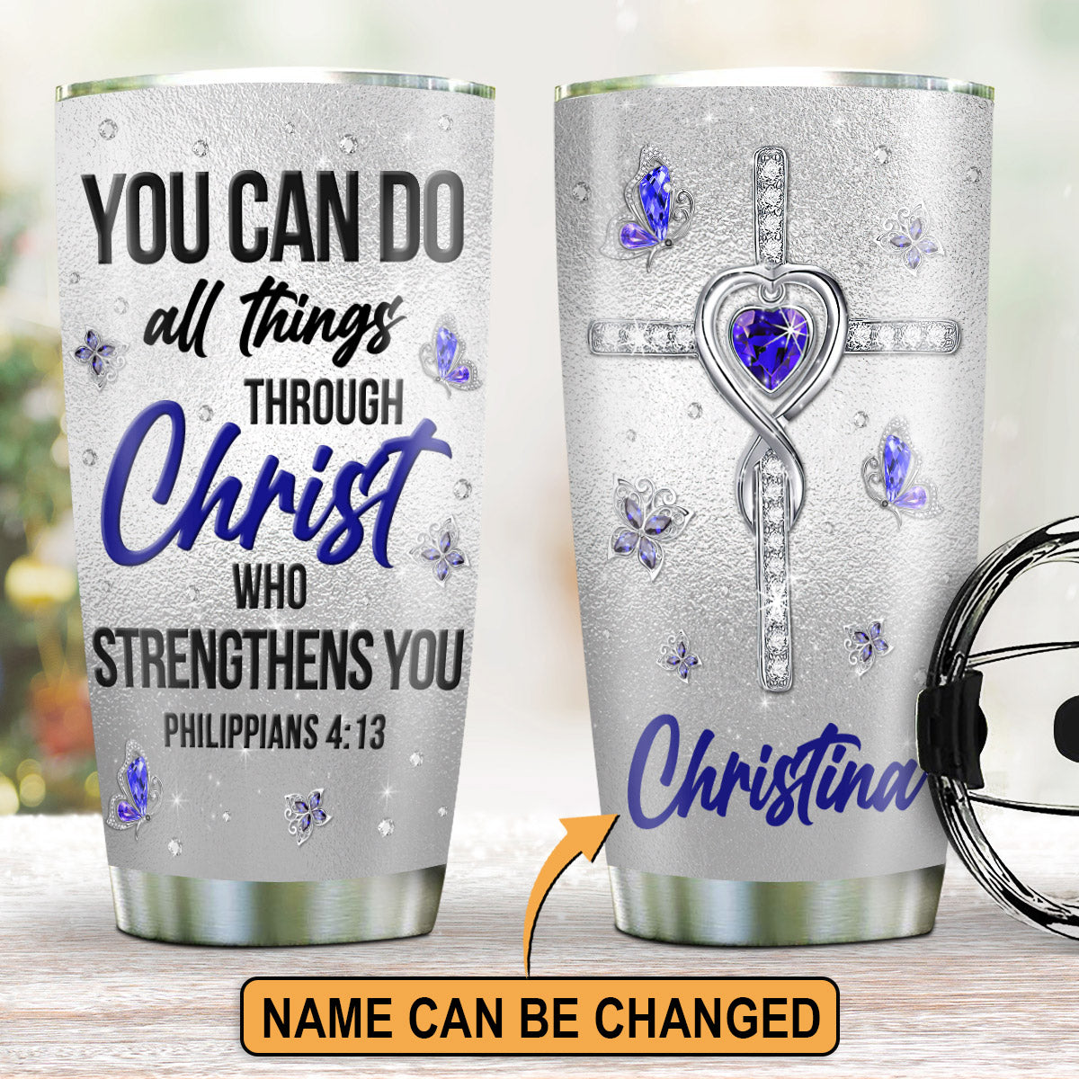Elegant Personalized Jesus Stainless Steel Tumbler 20oz - You Can Do All Things Through Christ NUA184