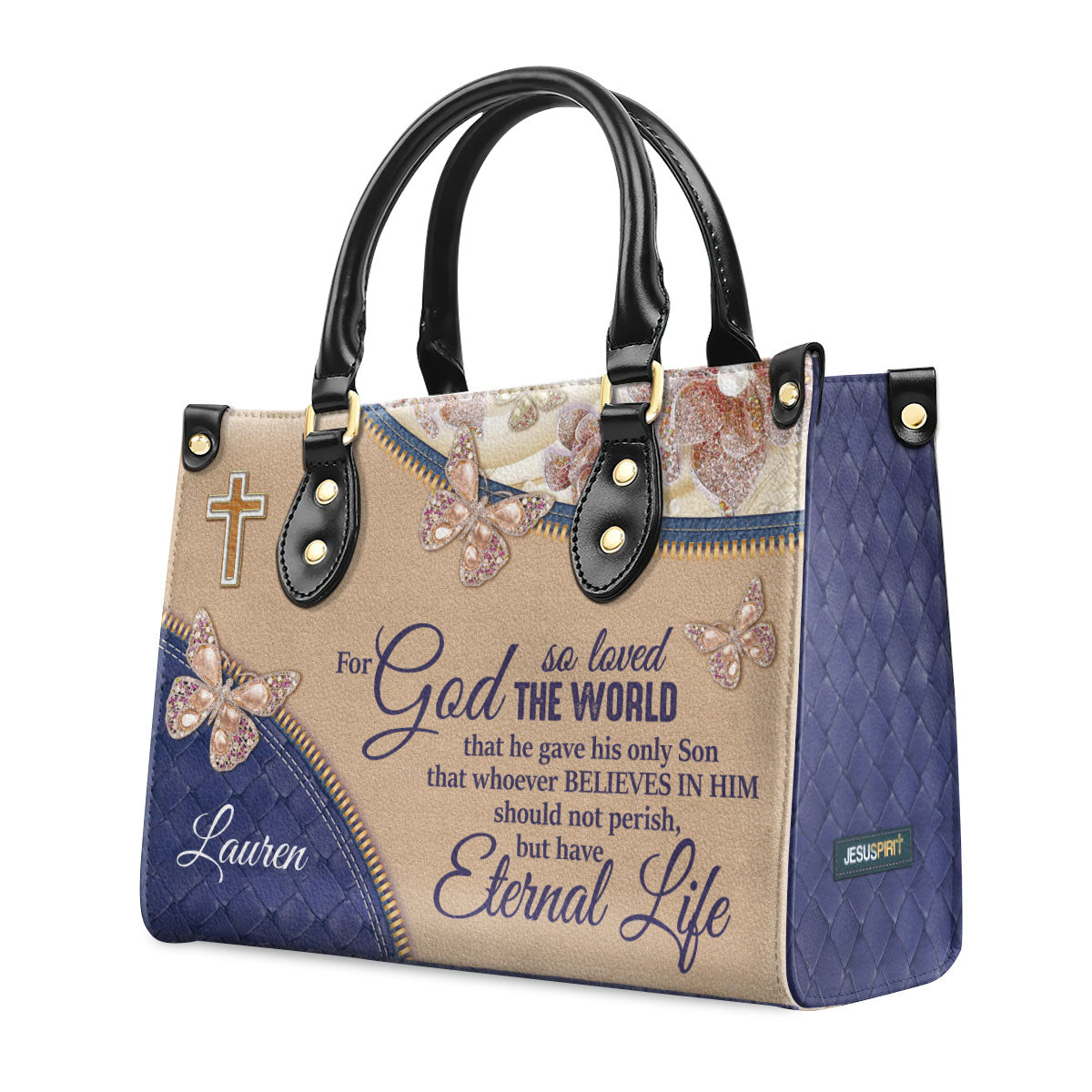 Elegant Personalized Leather Handbag - For God So Loved The World NUH285